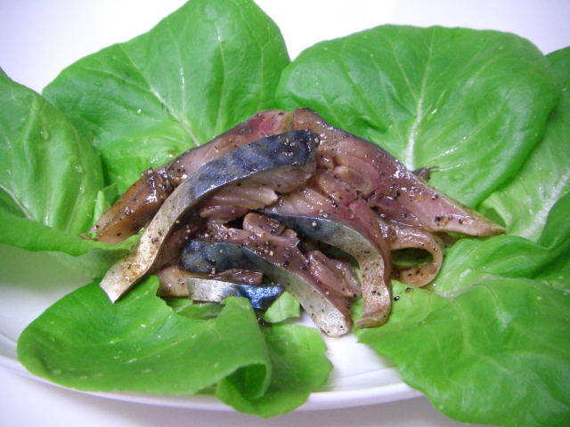 (レシピは同じく左のフリー・エリアの"前菜"の中にあります)脂がほんのり乗った鯖は、美味しさがじんわりと口の中に広がります。