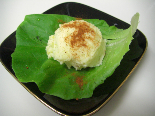UPはしていませんが、先週作った"牛ミンチのマッシュ・ポテト焼き"で余ったマッシュ・ポテト。アイスクリーム・サーヴァーですくって、丸〜くしました。