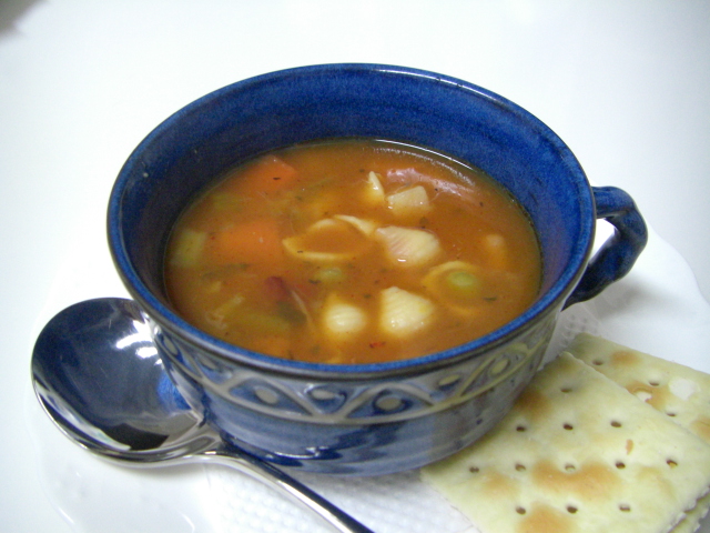 もう一つおまけの超簡単メニューは、缶詰を温めて調味しただけのミネストローネ・スープ(^^ゞ