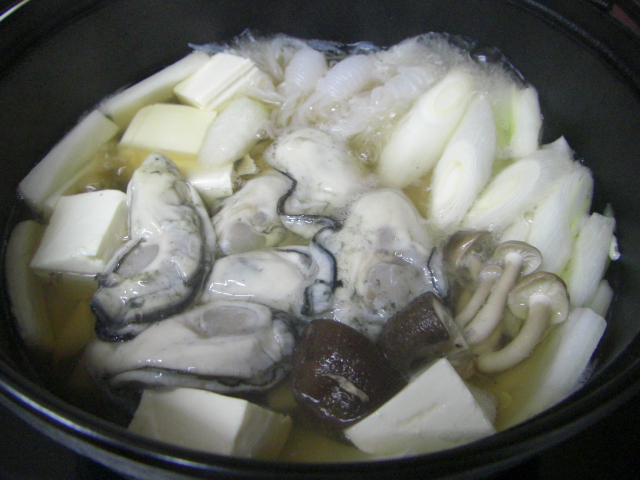 以前は、牡蠣をお鍋で煮る時には、お味噌味にしていましたが、最近は白だしのお醤油味です。