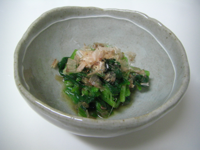 ほうれん草のお浸し・・・自分でもこんなにほうれん草が好きだってことに最近気づいたのだそうな。