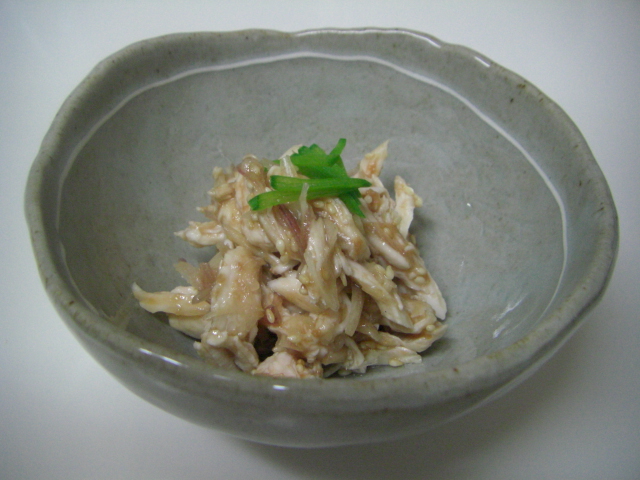 大鵬のふぐちり、食べたいナ♪鶏ささ身の梅肉和え。