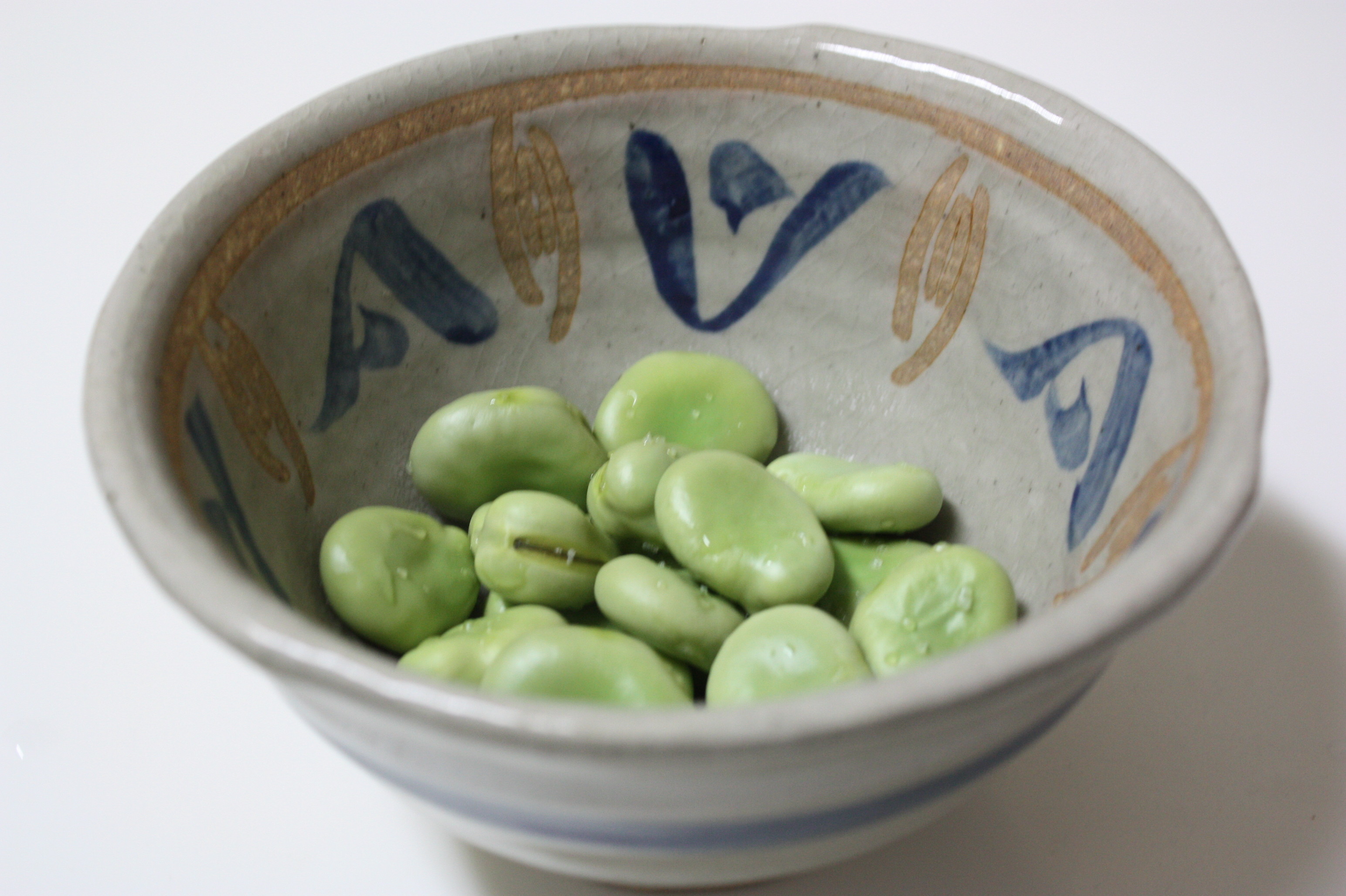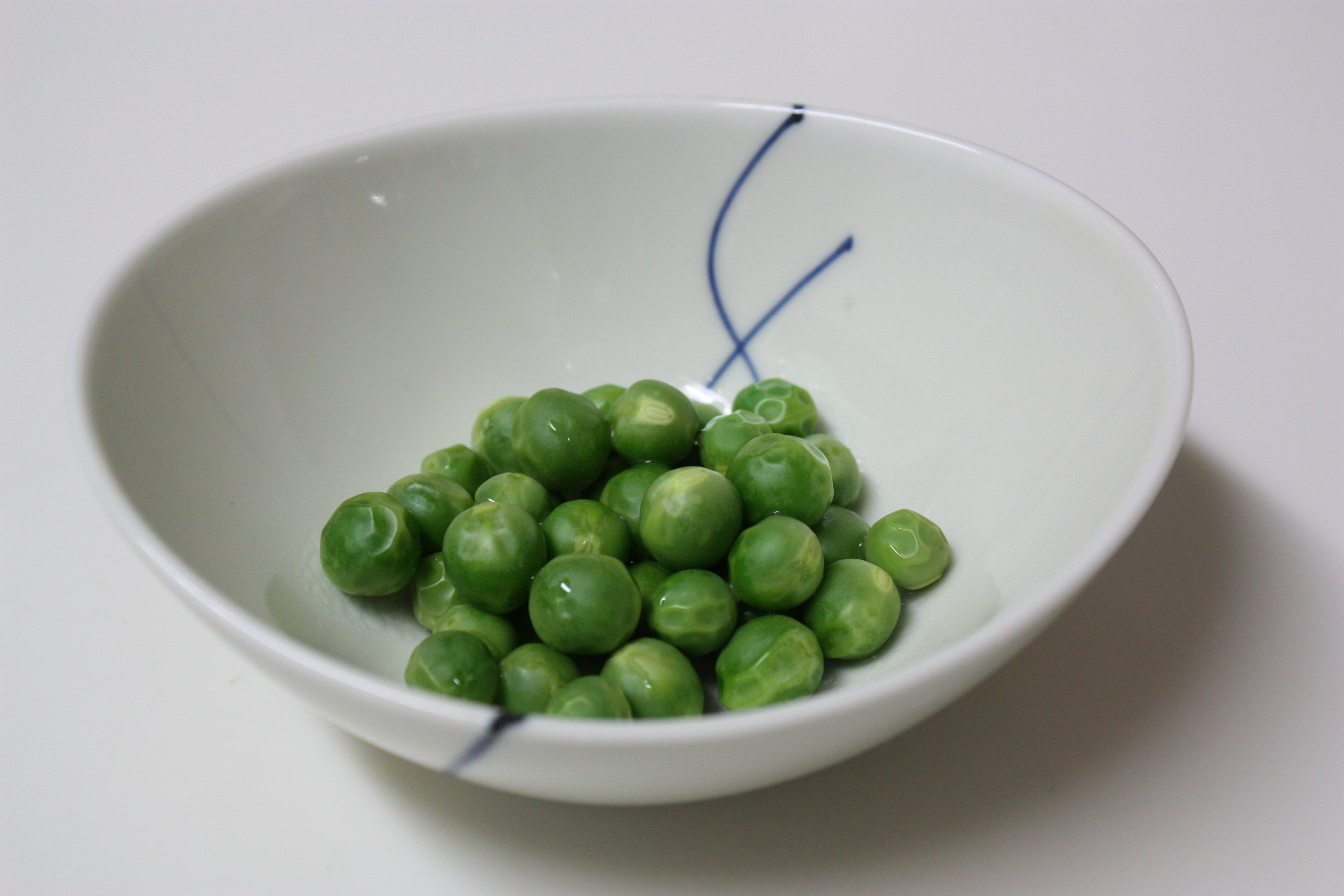 茹でてお塩をしただけのグリーン・ピース。 素朴で美味しい。