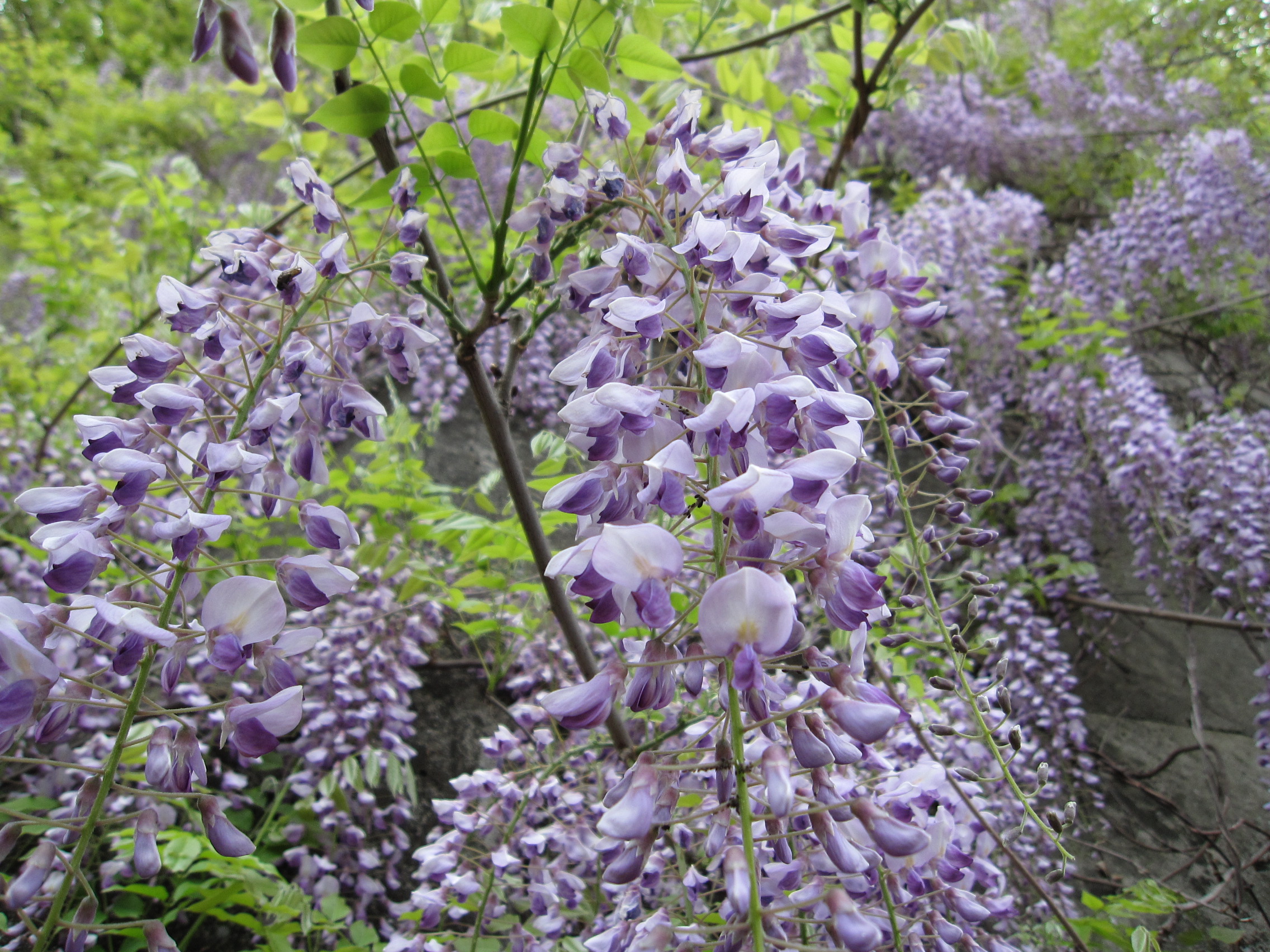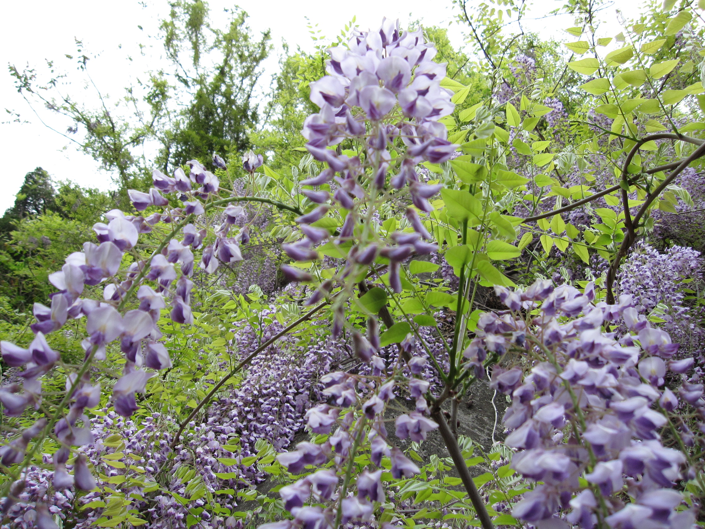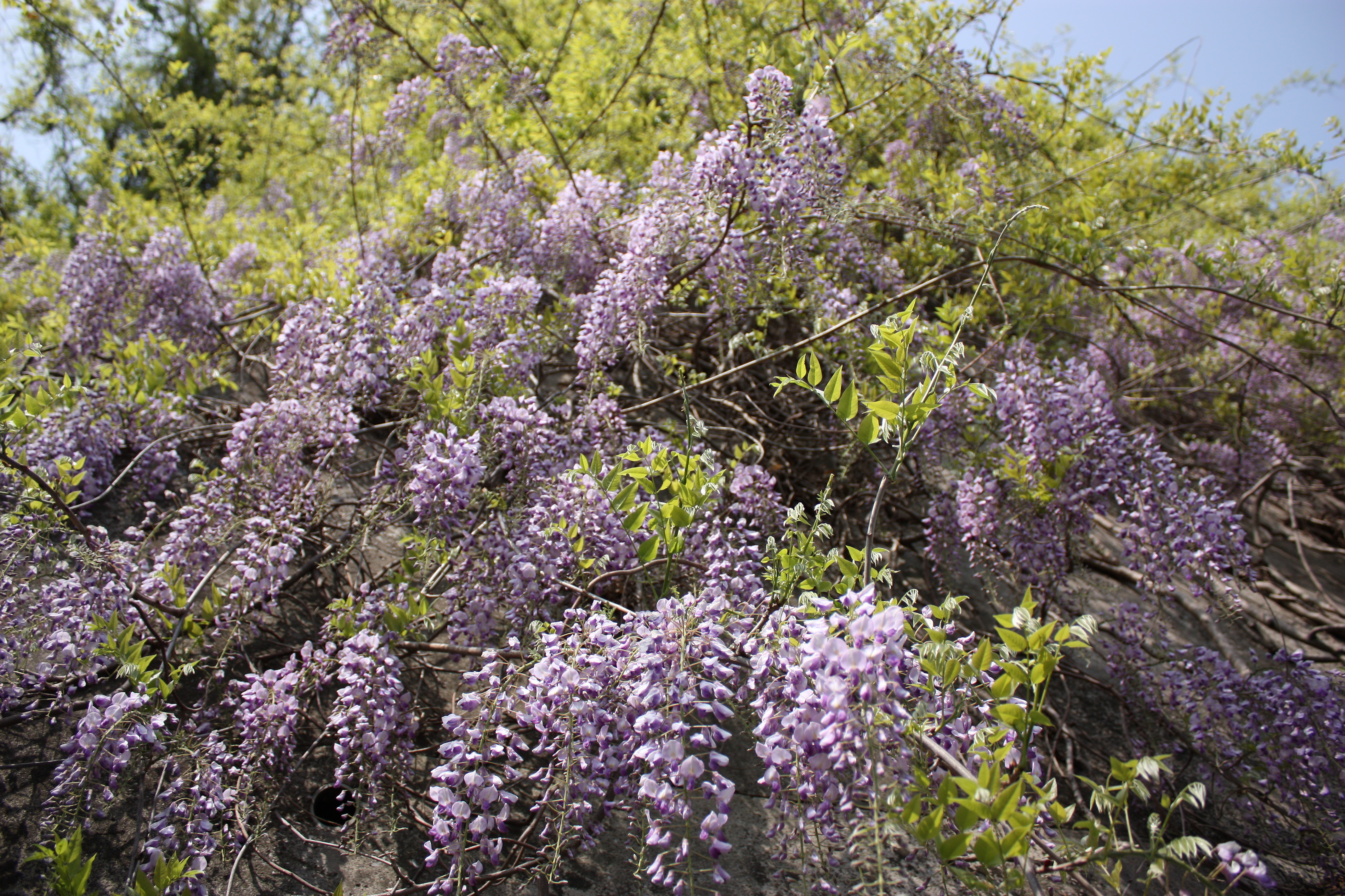 私が毎年心待ちにしている、近くの崖の藤の花も、去年UPしたのは4/22でしたが、まだ満開ではありませんでした。 今年はもう満開! 散り始めたのもあります。