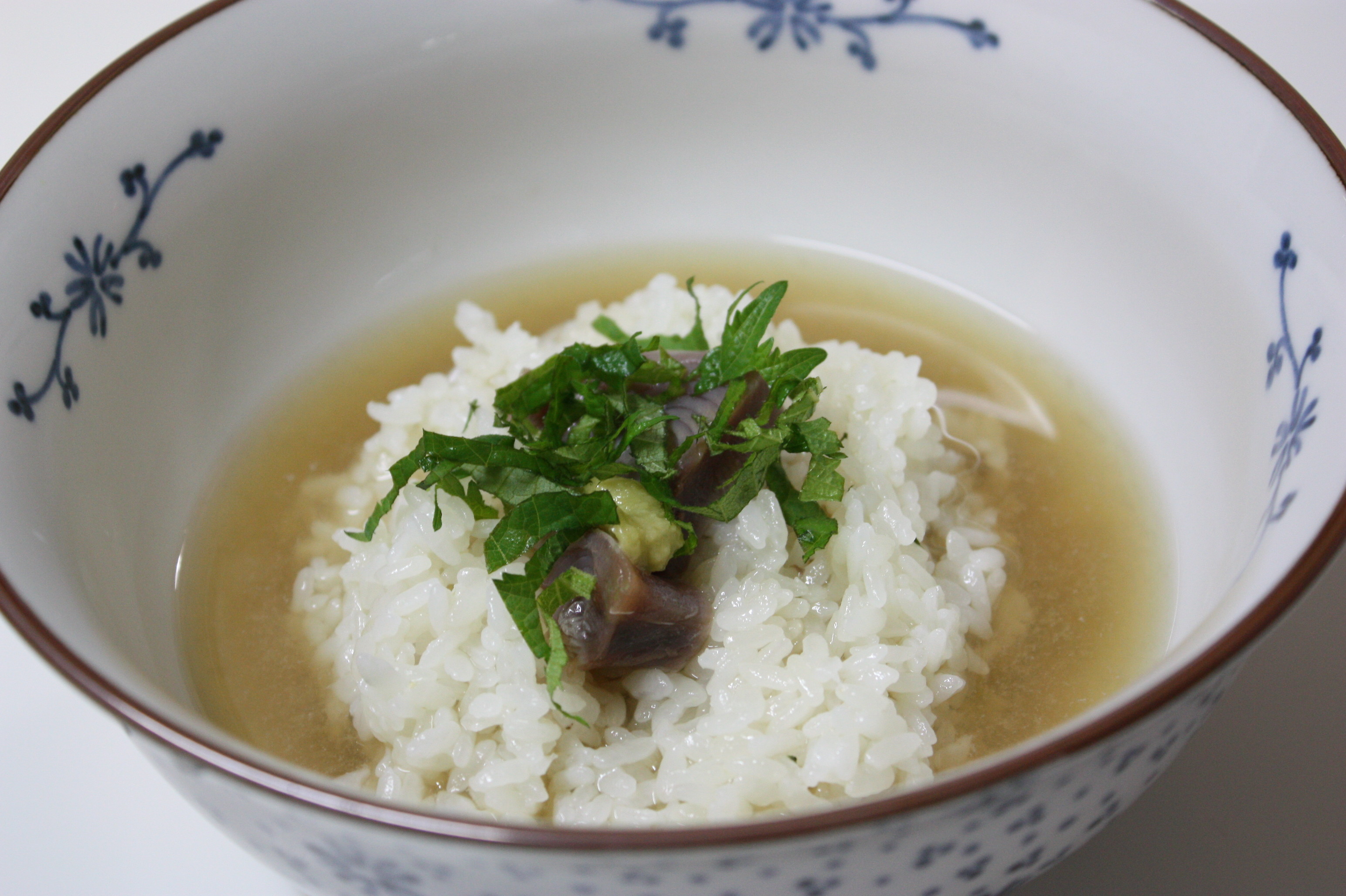 に漬けておいて、翌日お茶漬けにしました。(**実際は、お醤油、お出汁、お酒、みりんを使いました。)