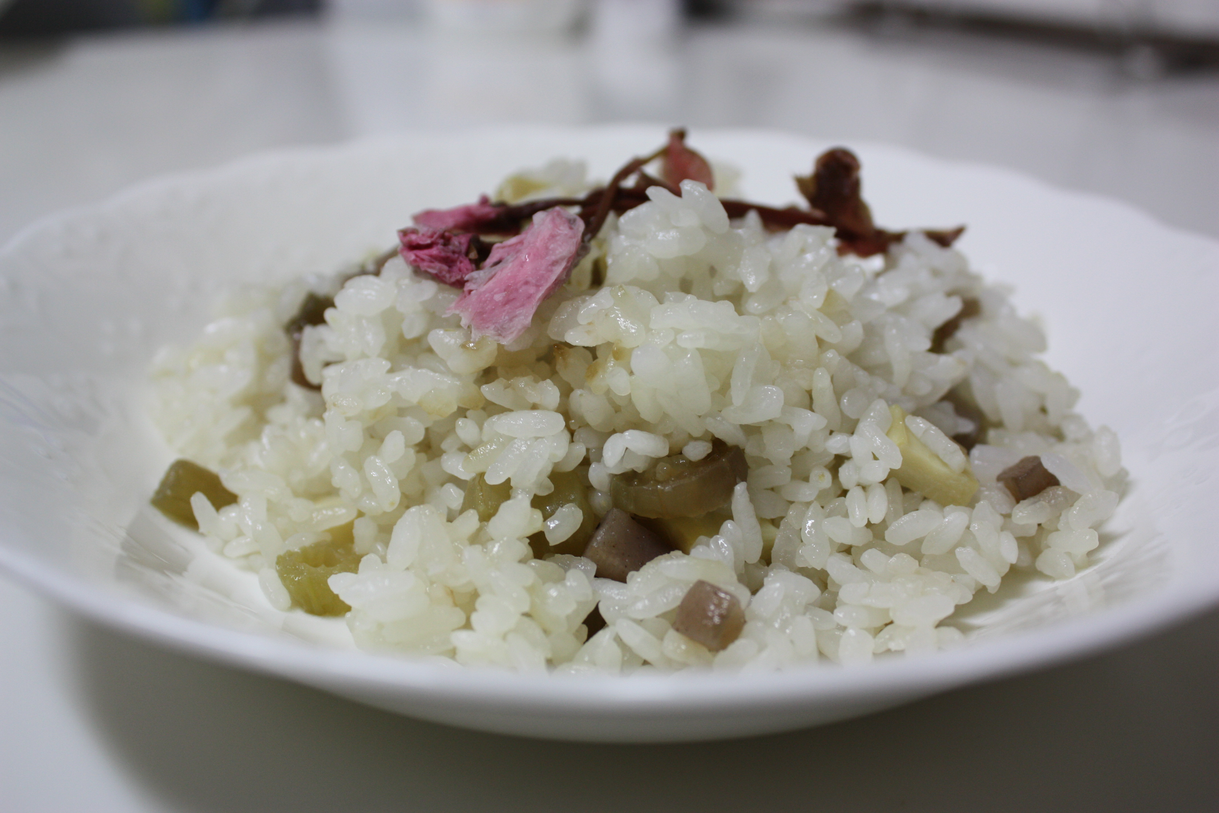 日本中が晴れなんていう日があるんだな〜となんだか嬉しくなりました。↑ 桜の塩漬けを使って、ご飯も炊いてみました。