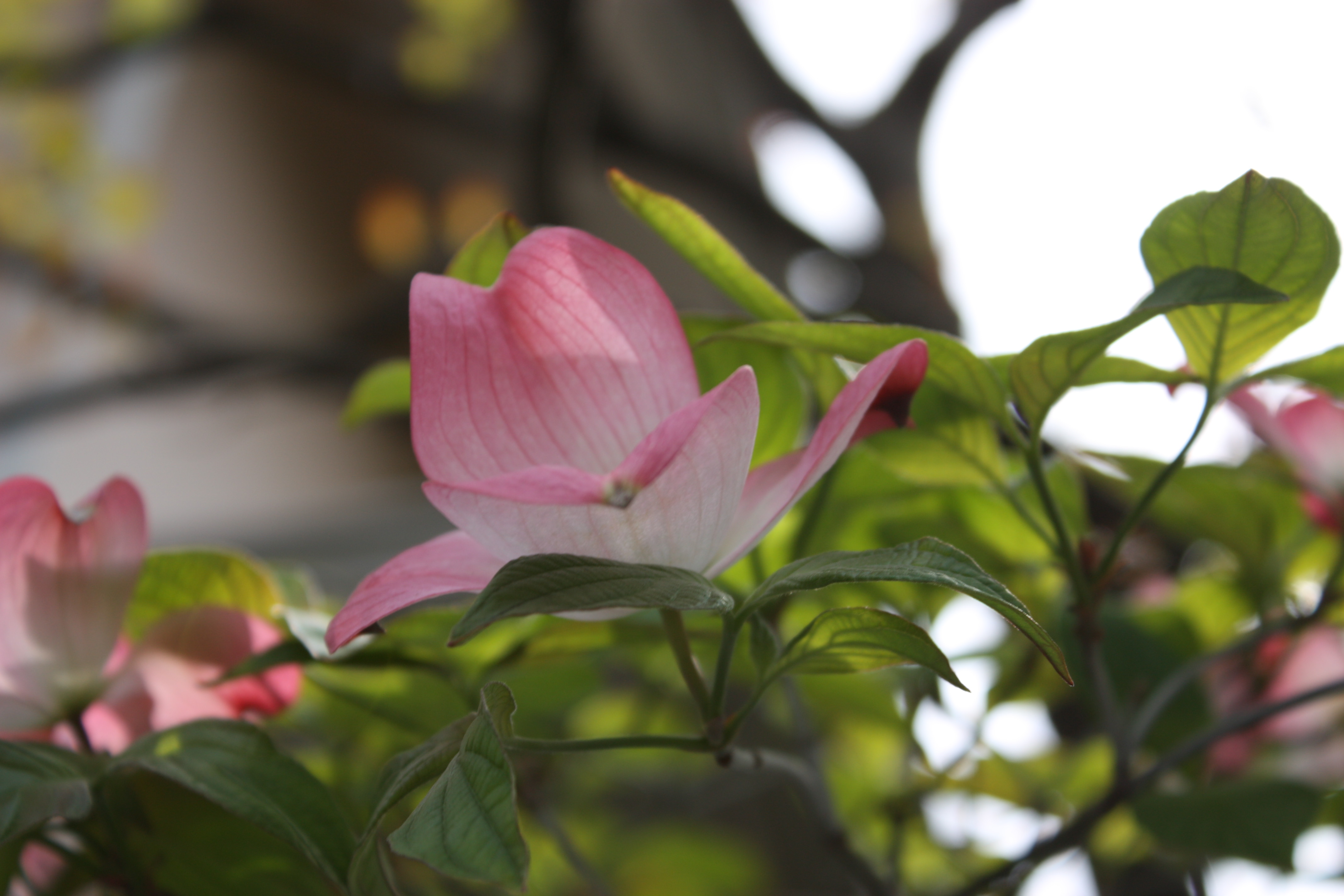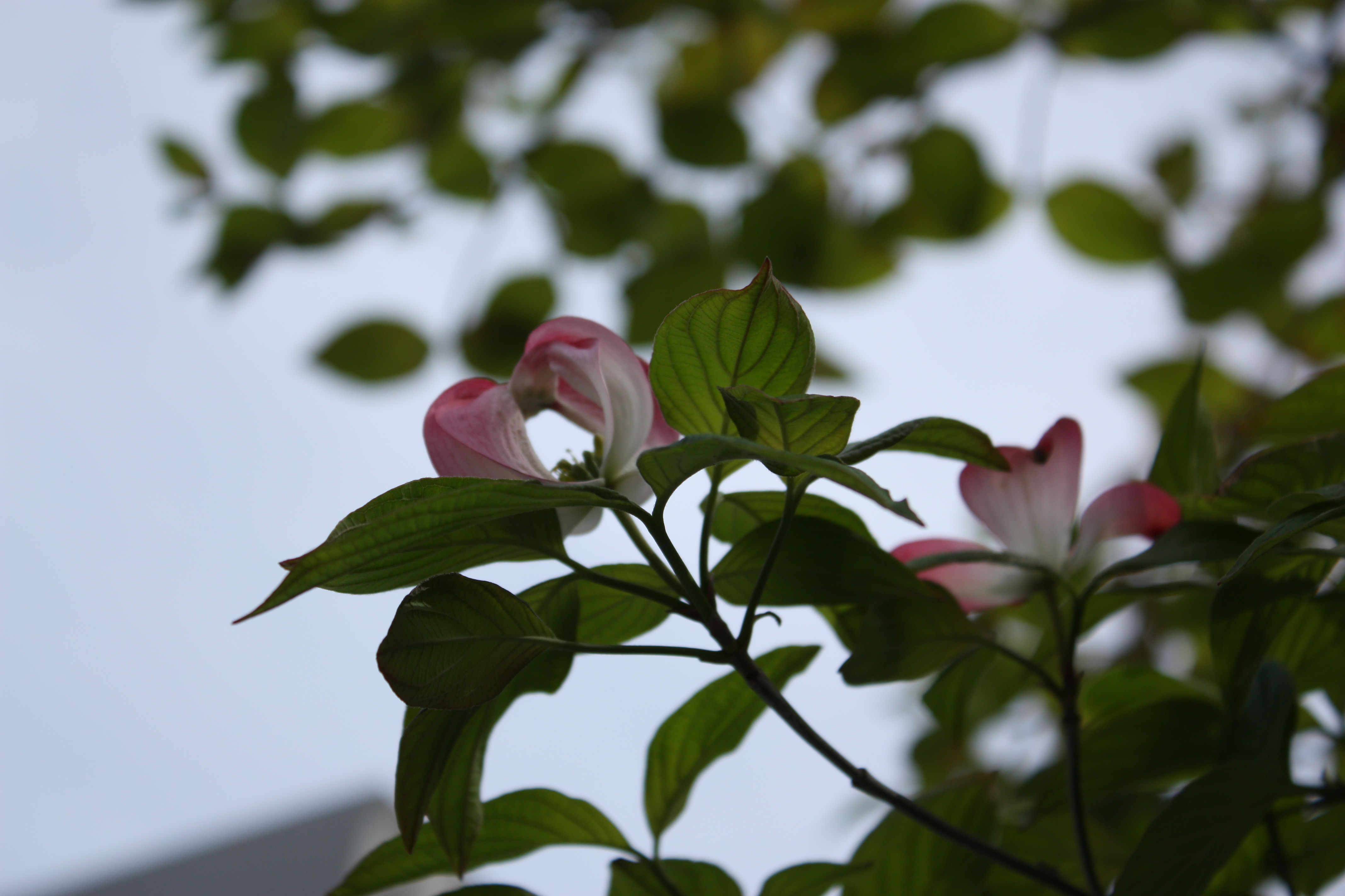 すっかり街路樹として定着した白やピンクの花水木は、寄り添った花びらの先がふわりと割れて咲く咲き方が面白いですね。