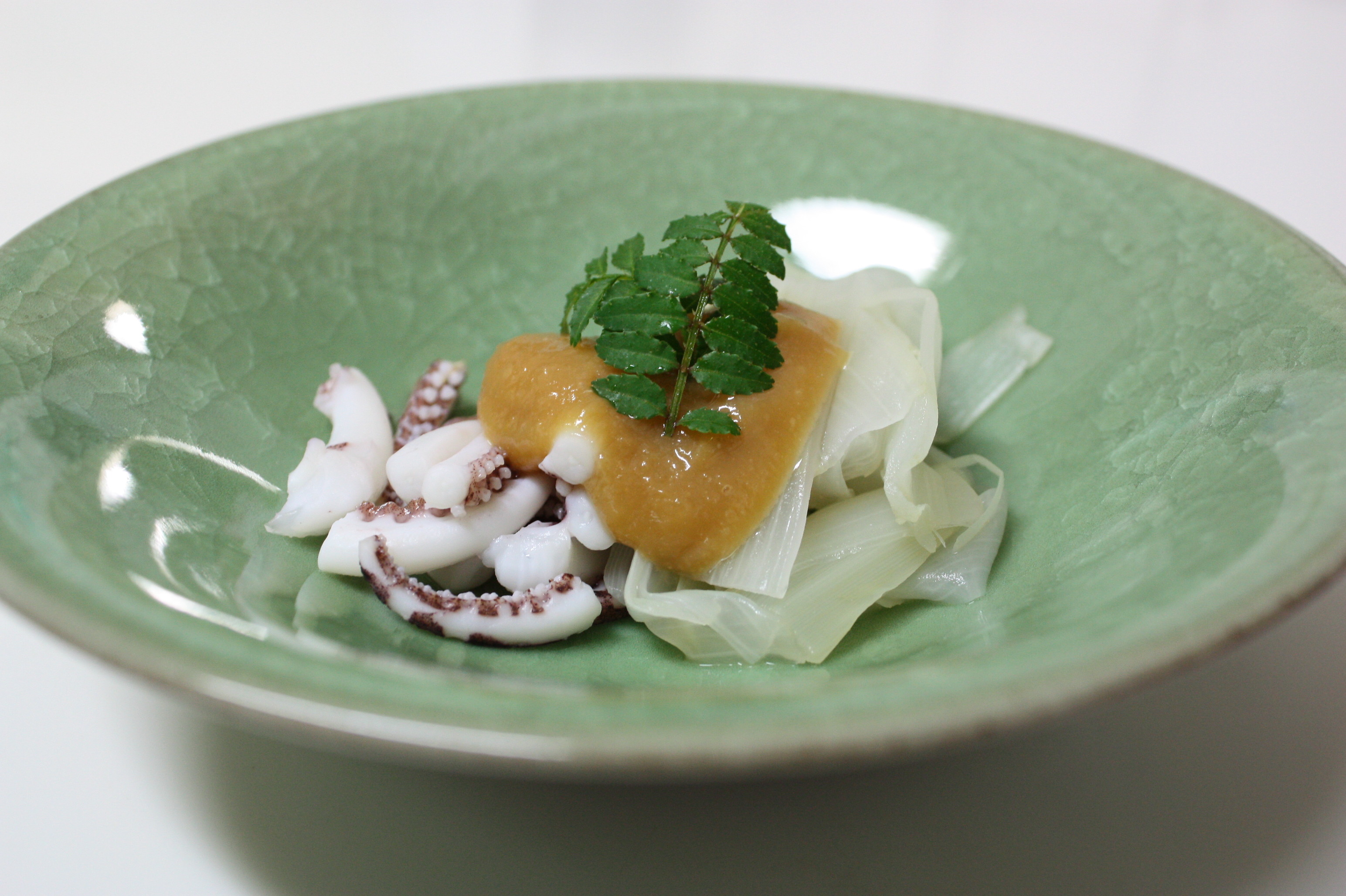今日は出さなかった塩辛を作るために捌いたスルメイカ2杯分の足をさっと茹でて、ウドのお供にしました。