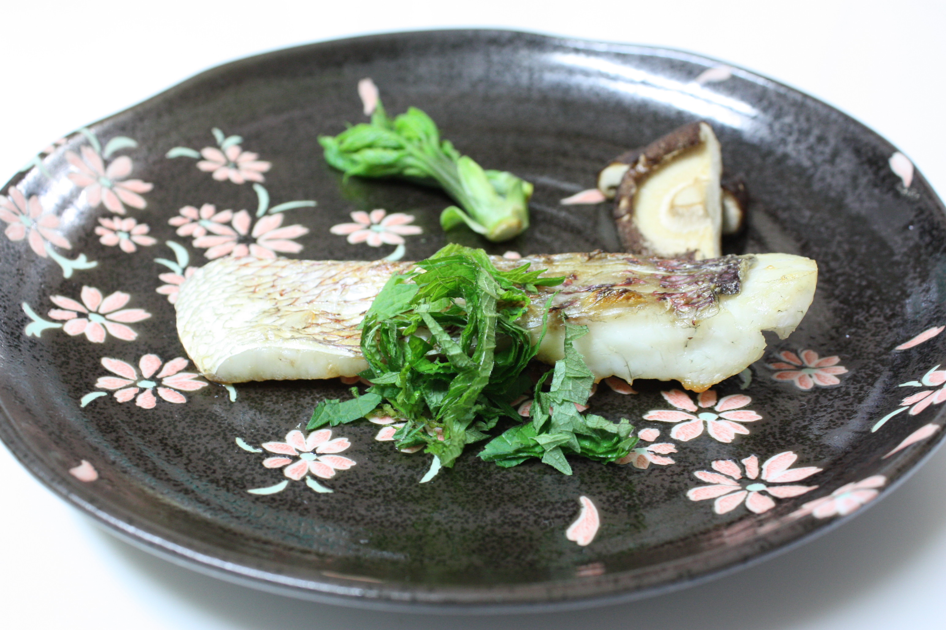 真鯛の塩焼きにも"コシアブラ"を添えました。