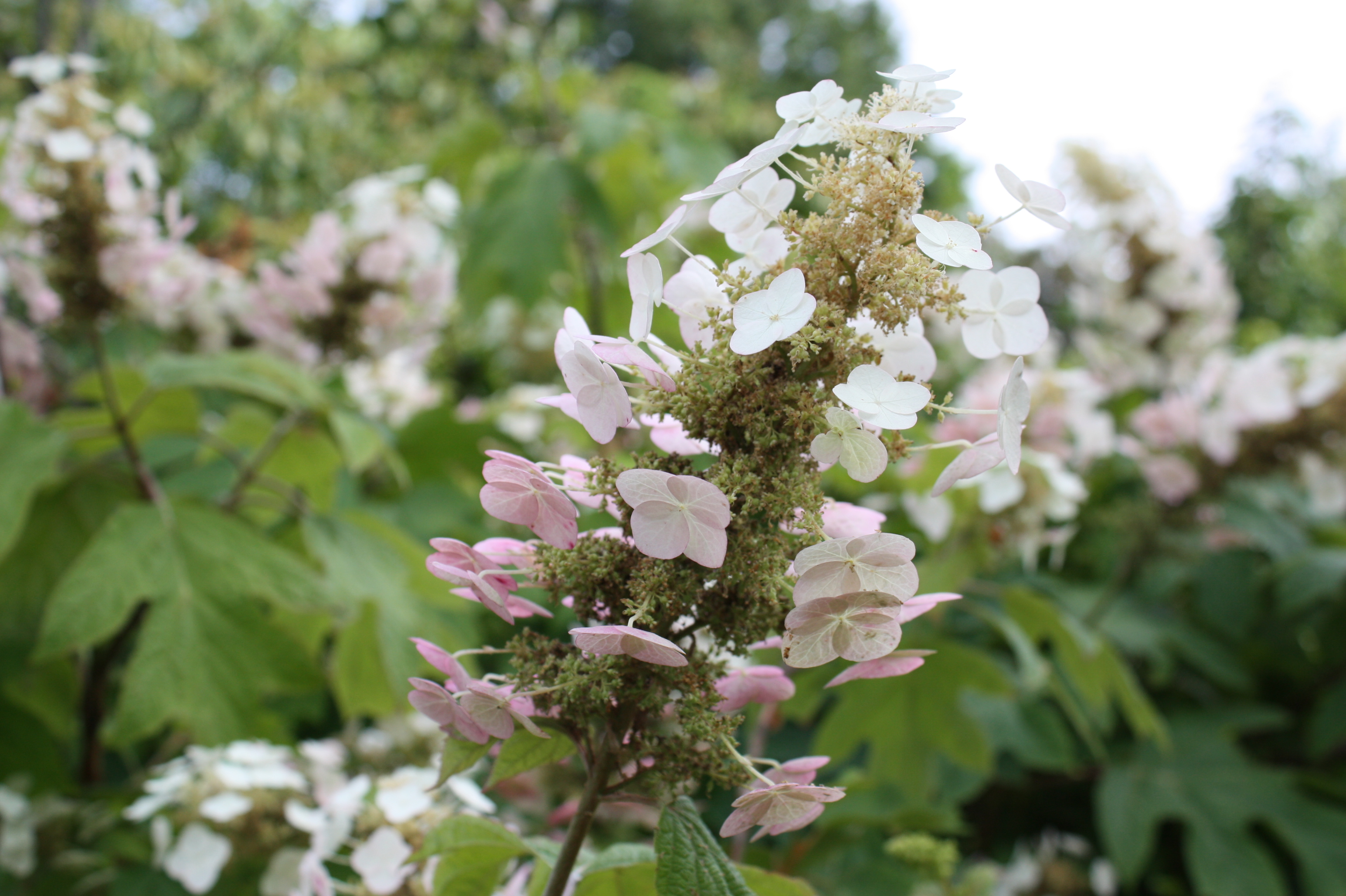 薄いピンクがかった八重の柏葉紫陽花は、丁度見ごろ。