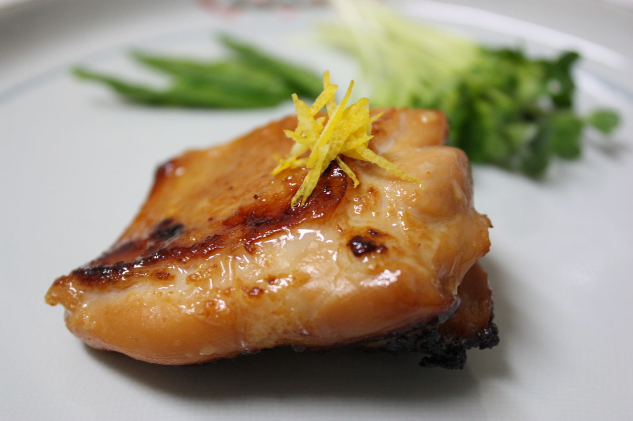 お味噌を綺麗に拭って、少し弱めの火で皮目の方から焼きます。