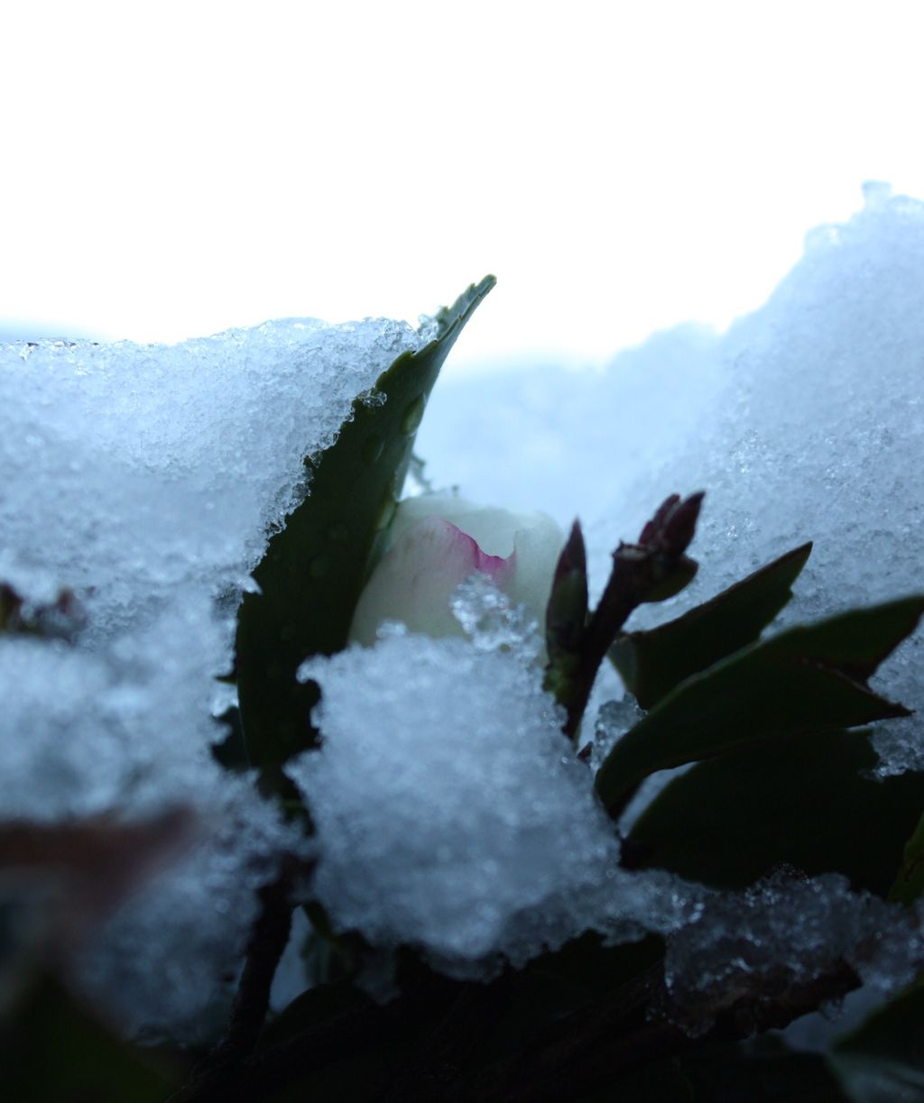 朝には雨に変わっていて、せっかく積もった雪が解けてしまわない内にと出かけたのは、住んでるところの裏の方。