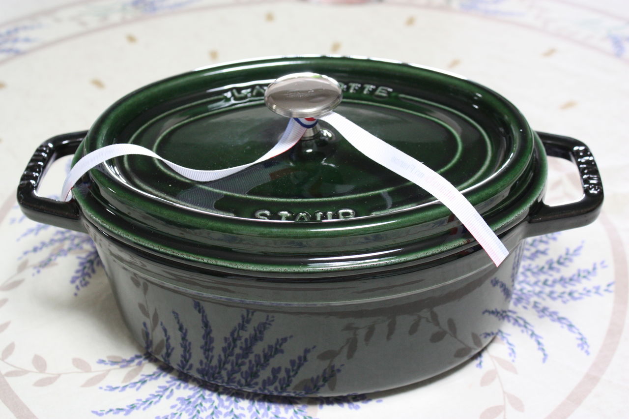 staub のお鍋は、燻製もできるというので欲しかったものです。色や形や大きさをあれこれ迷っていたけれど、バジルのオーヴァル、23cm。