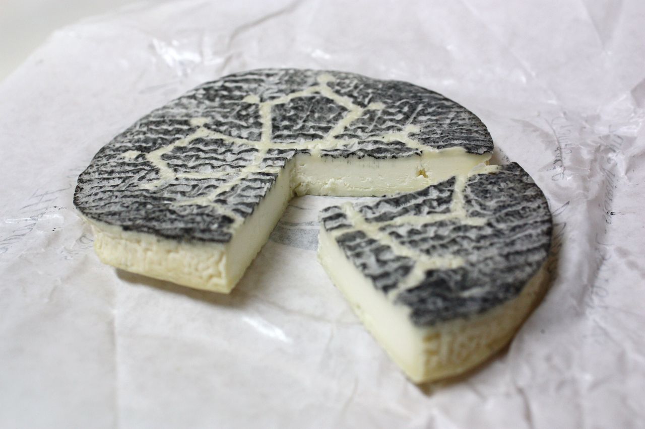 クローバーの形が幸せを運ぶと言われる、ノルマンディー地方のトレフル。灰をまぶした外皮のすぐ内側の艶のある白い部分が冷蔵庫から出して暫くするとトロっと溶けて、ふんにゃり形が崩れます。