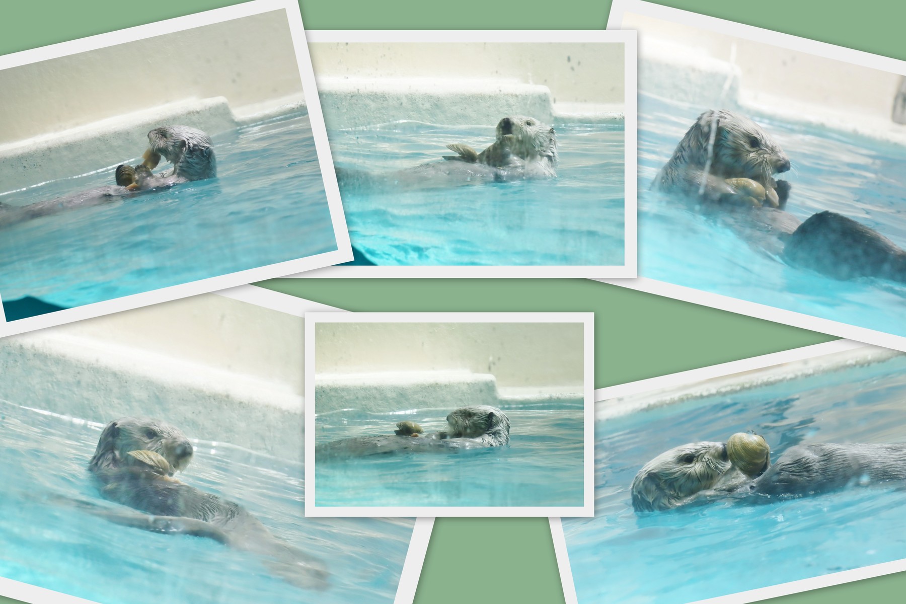 今度は食べ終わった貝の殻を、途中で水の中に落としてしまいます。そのまま飼育員さんの所へ戻ると「貝は?」と聞かれ、「あッ?!」という表情。急いで底に沈んでいる貝殻を拾って戻ります。