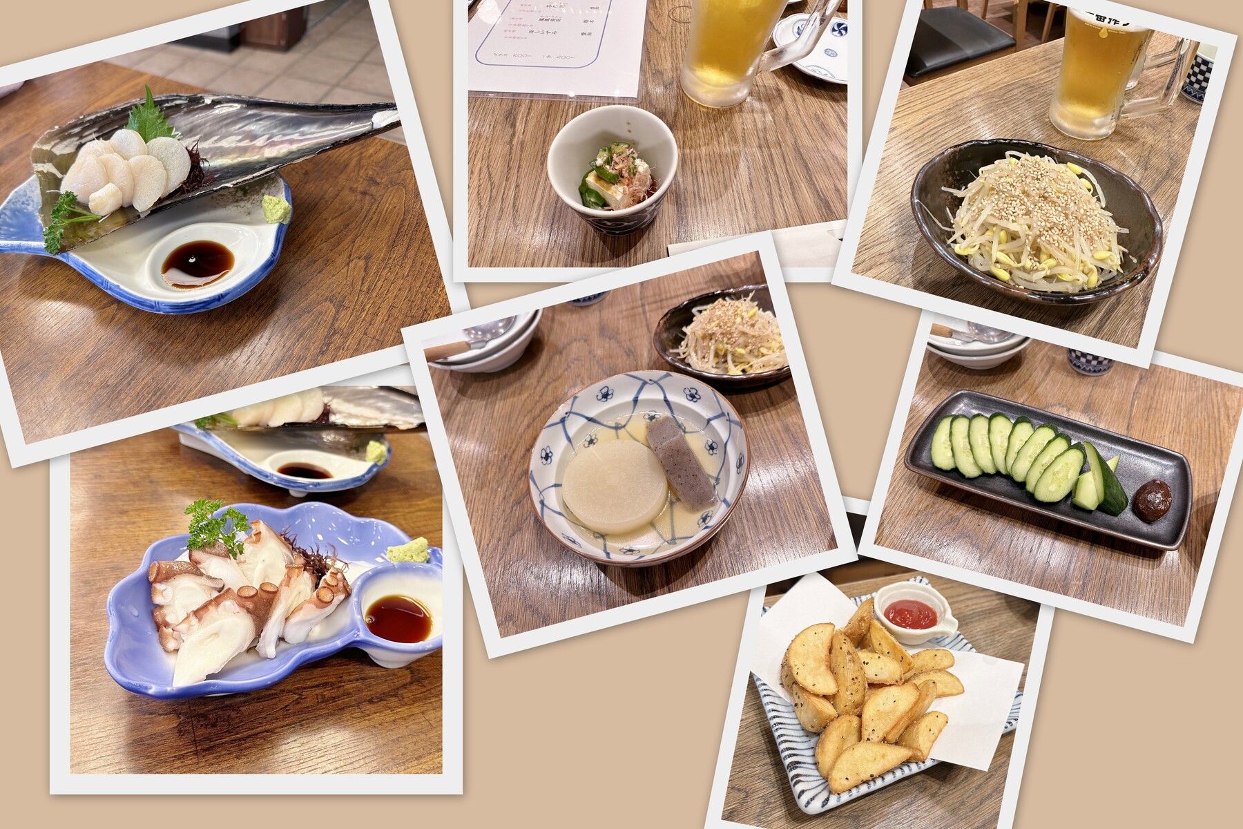 おじさんに教えてもらったお店で、平貝と蛸刺し with Beer。