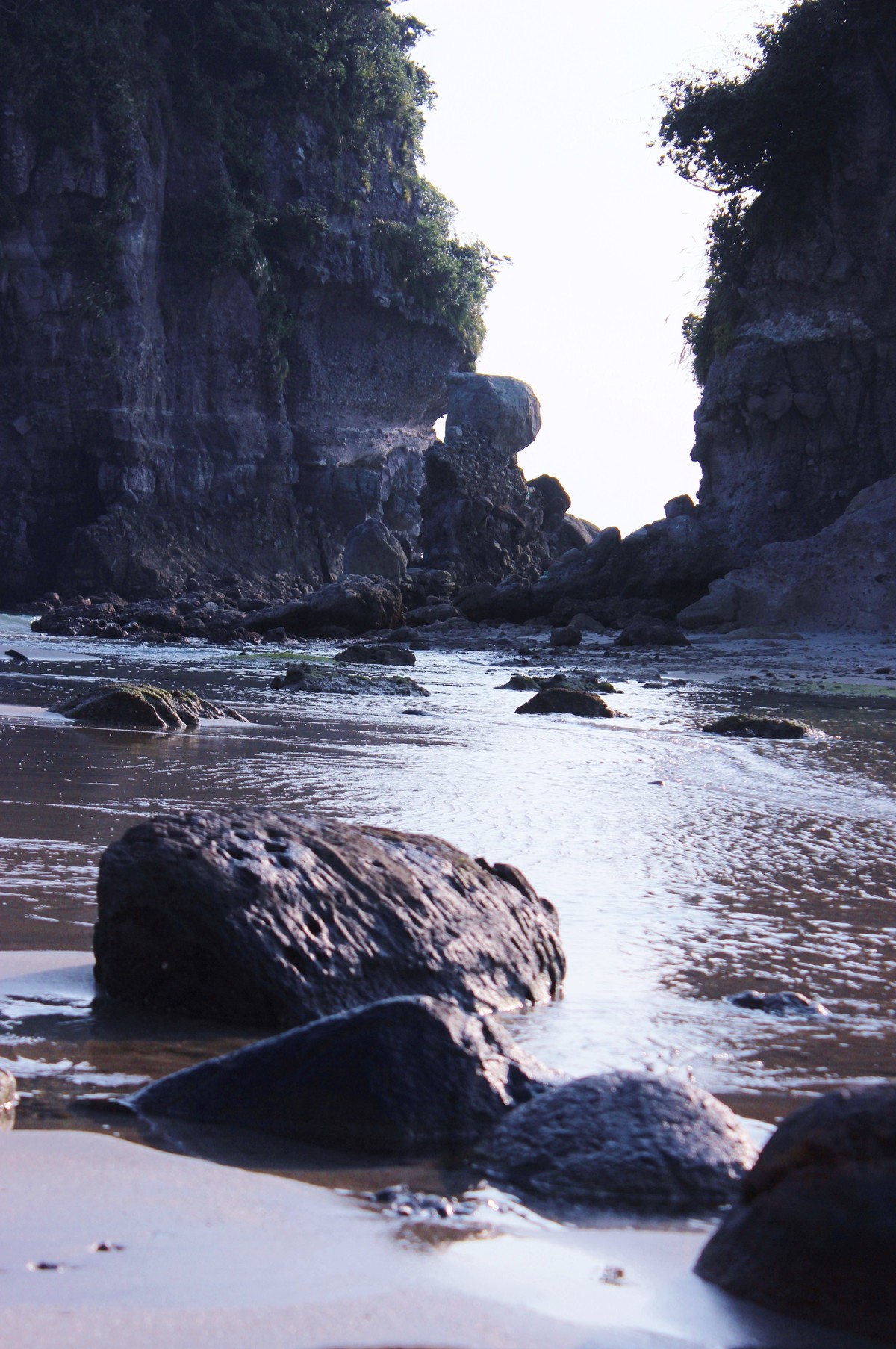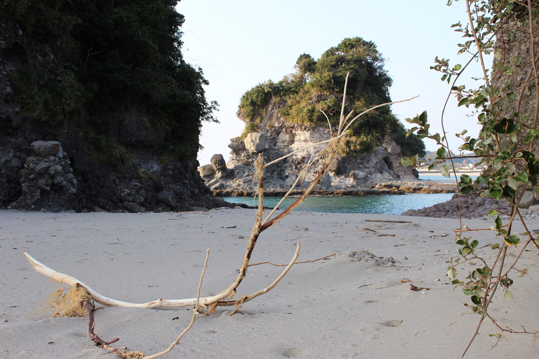 鹿児島にいた 5日間、今年は、最後の一日を置いてお天気に恵まれずほぼ曇り時々雨の毎日。西方の浜辺へ下りたこの日は、海は凪いでいましたが一日中曇り空。