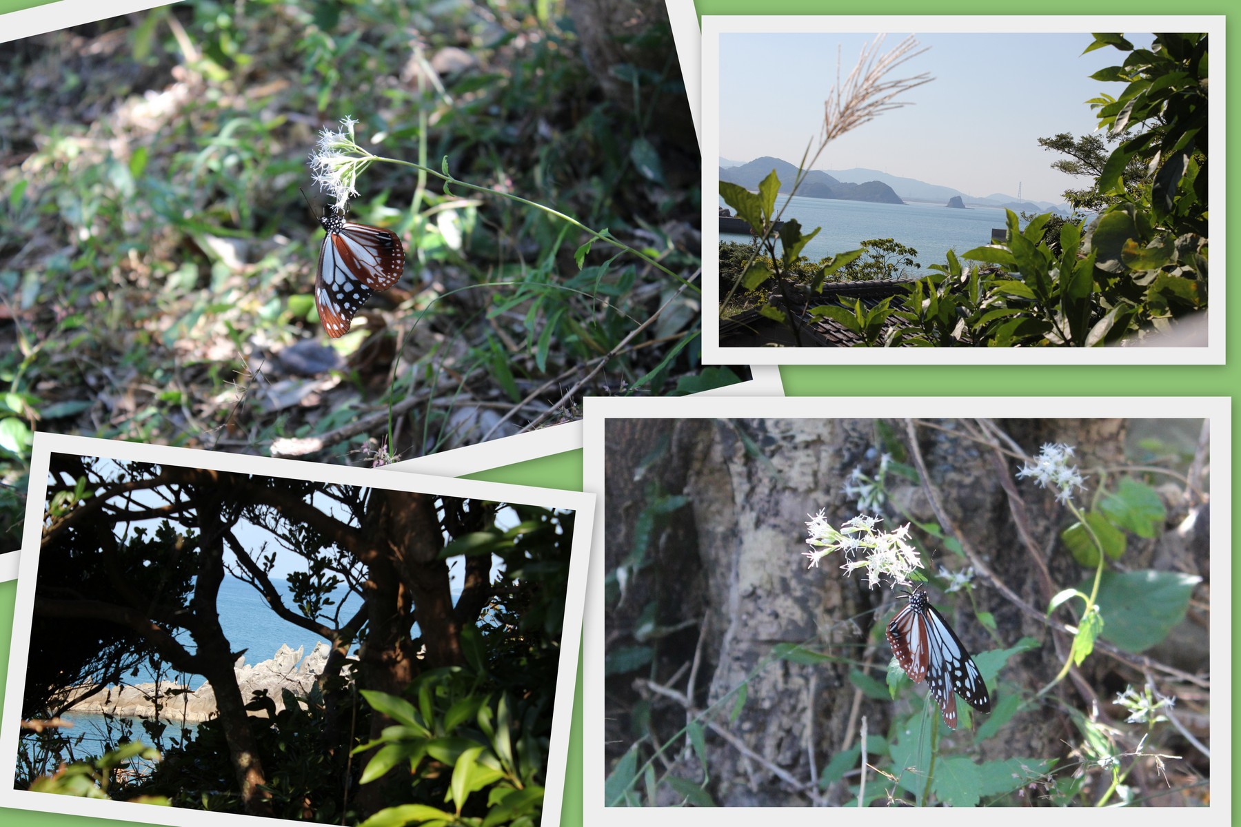 この蝶は "アサギマダラ"ほぼ日本中に分布しますが、春から夏に南から北へ移動し、移動した先で世代を重ね、秋になると南へ移動するそうです。