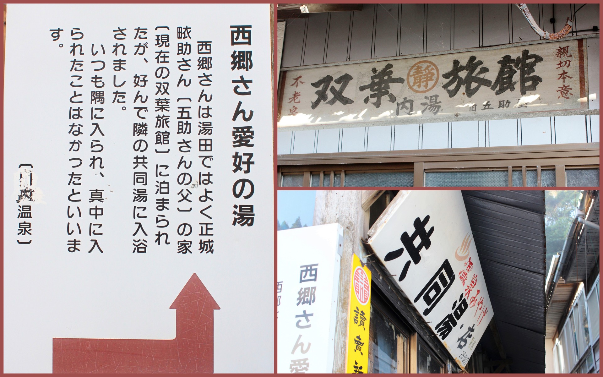 この温泉は、西方(父の故郷) から近く、父が子供の頃に、自分が湯治に来たり父親が湯治をしているのをお見舞いに来たり、冬の寒い時に温まりに来たりと思い出がたくさんある温泉なのだそうです。