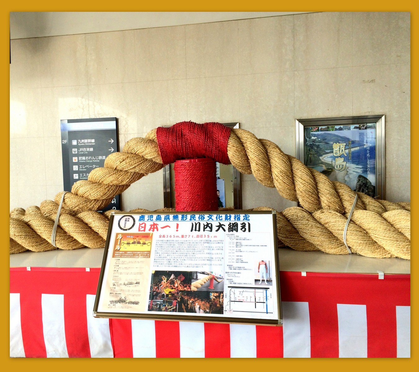 この綱は、長さ 365m、重さ約 7t 、今年は9/22 に行われ 416回目だったそうです。戦国武将・島津義弘が、関ケ原の合戦に赴く兵士の士気を高めるために始めたとされ、無形民俗文化財に指定されています。