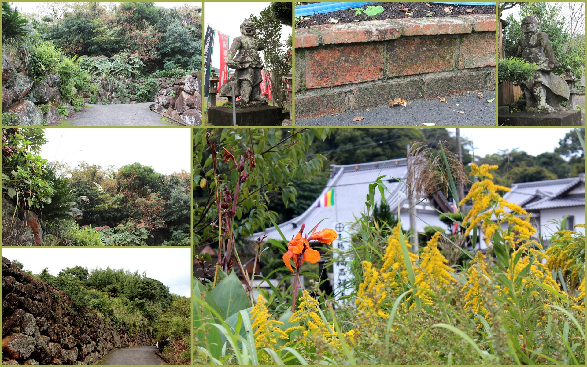 早馬神社や小学校へ寄り、高台から甑島を眺め、おばさんの家へ戻る途中で、猫がたくさん居るというお寺にも寄ってもらいました。
