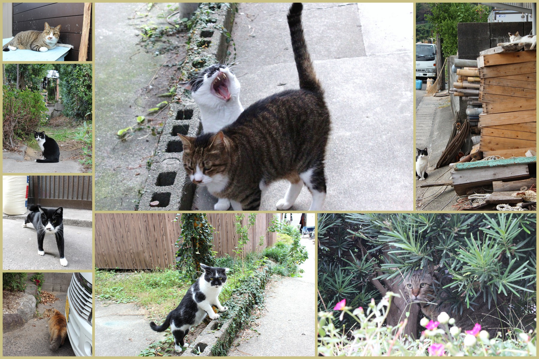 海と猫の写真が撮りたくても、なかなか海の方へ行ってくれないニャーちゃんたち。