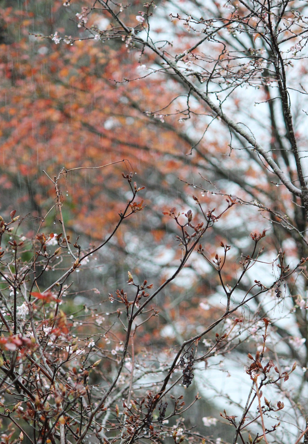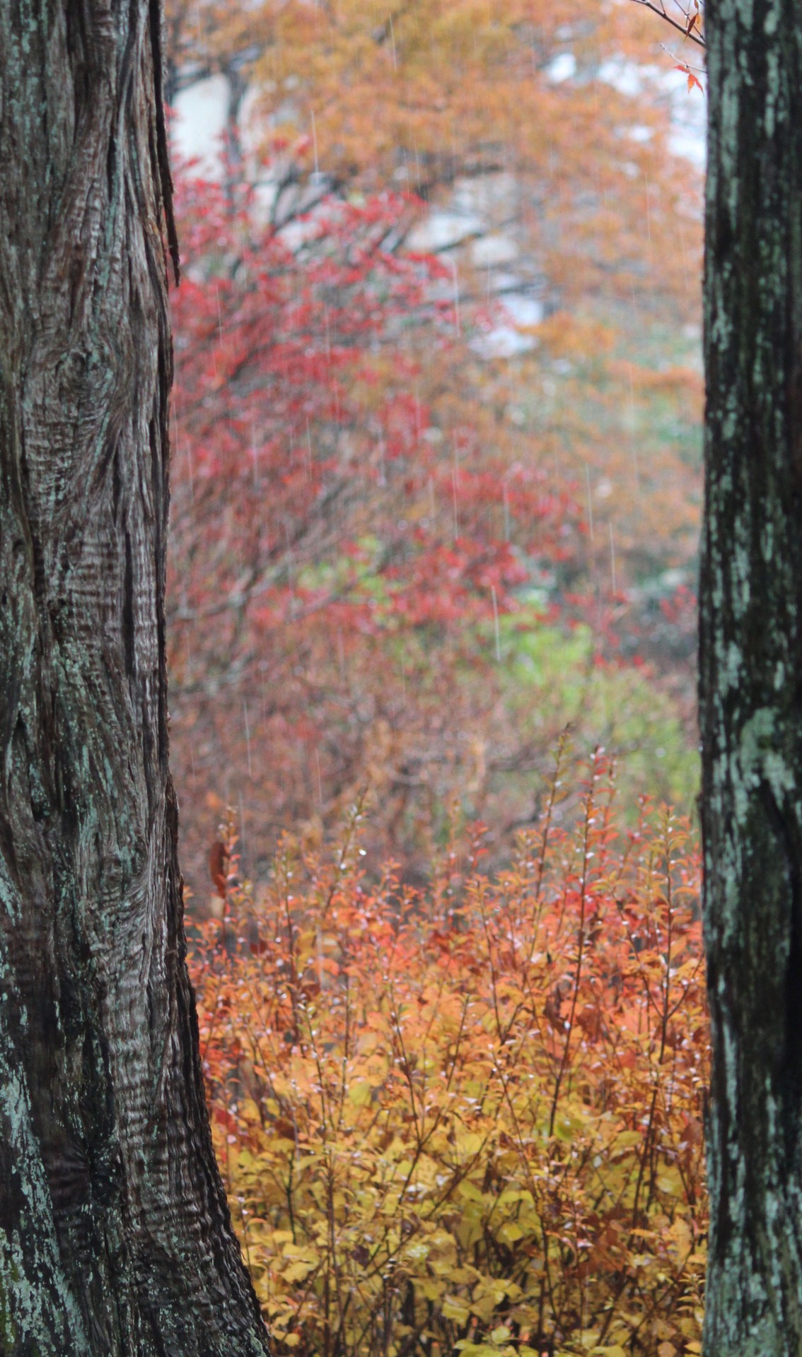 雨に濡れている紅葉した葉は、とても鮮やかで艶々。