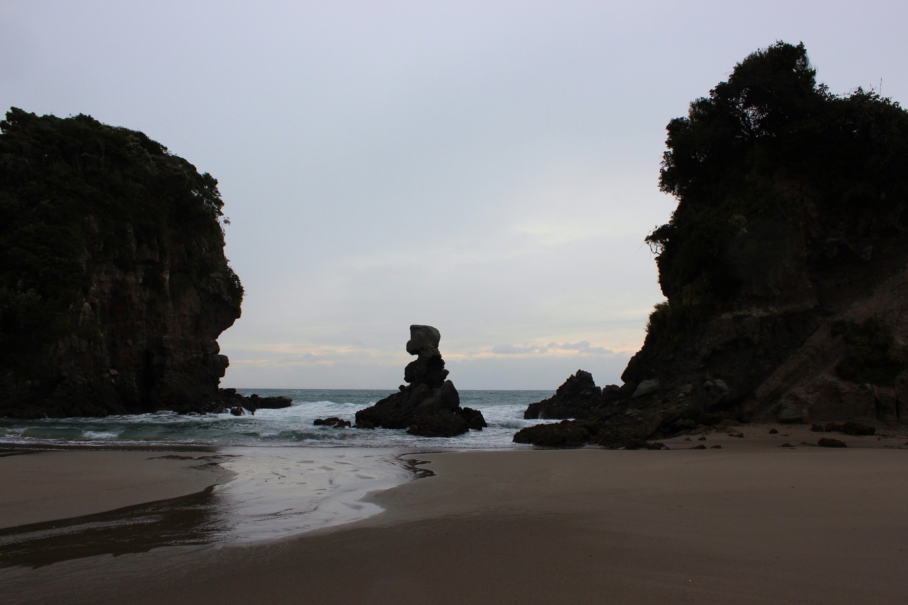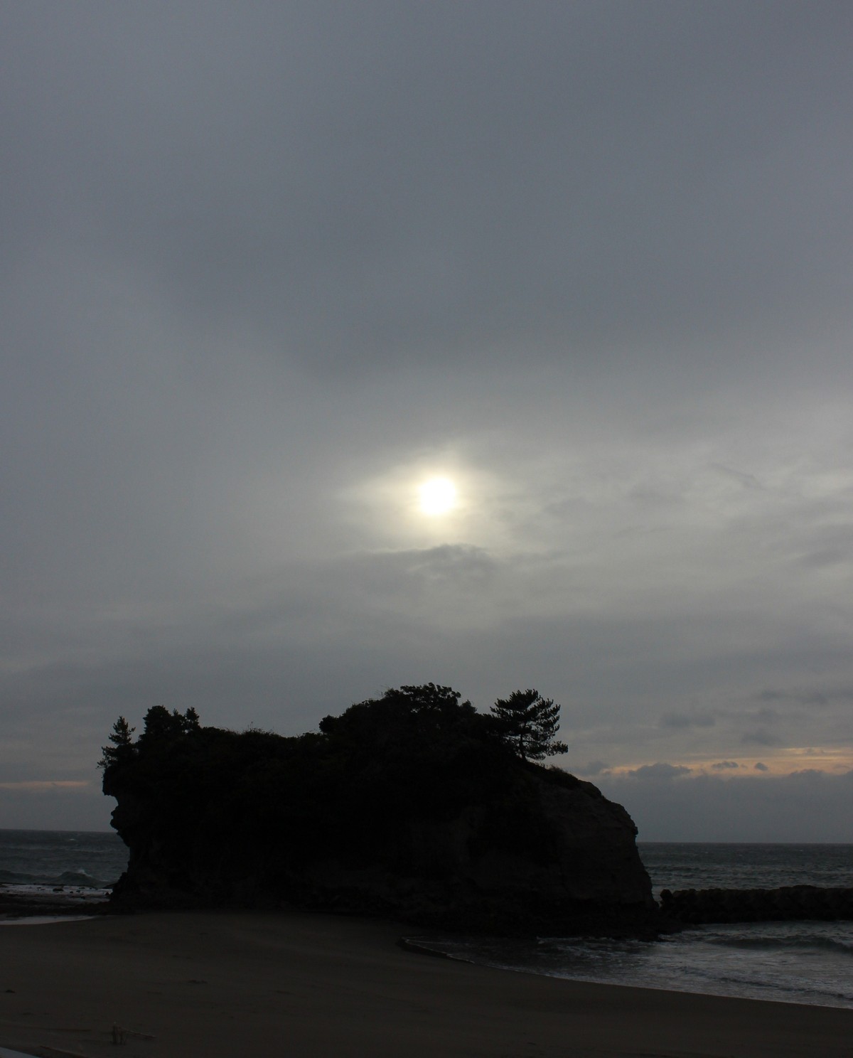 台風27号は太平洋を通過したので、東シナ海の海の波はそれほど高くありませんでしたが、雨も降ってきて浜辺の砂が海からの風でビュービュー飛んできて体に当たっていました。