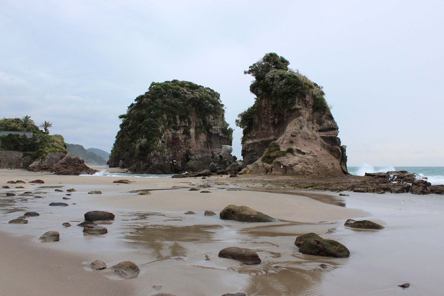 橋を渡ってよく登ったという小高い山を横目にしながら、低い石垣のある小道を通って、父が子供の頃よく遊んでいたという海辺へ行きました。