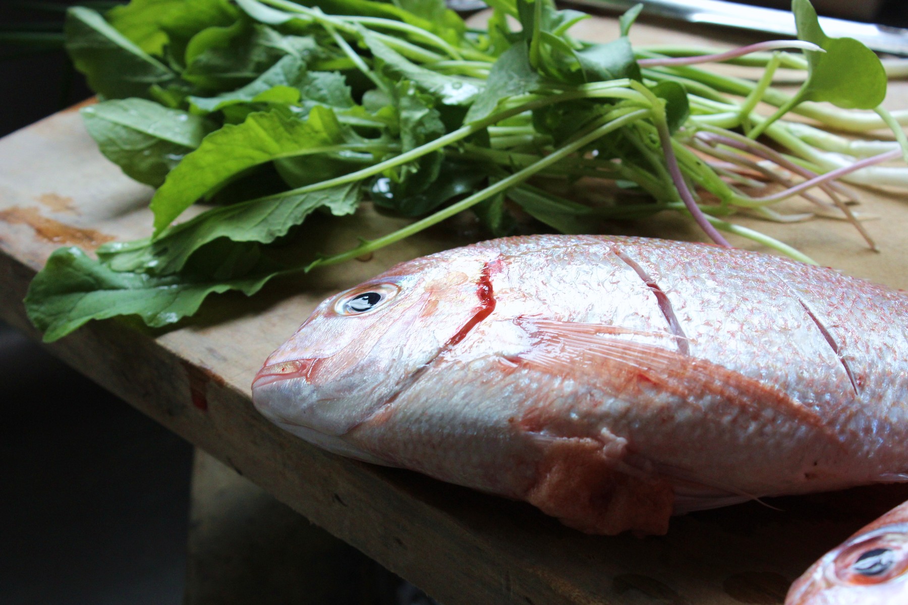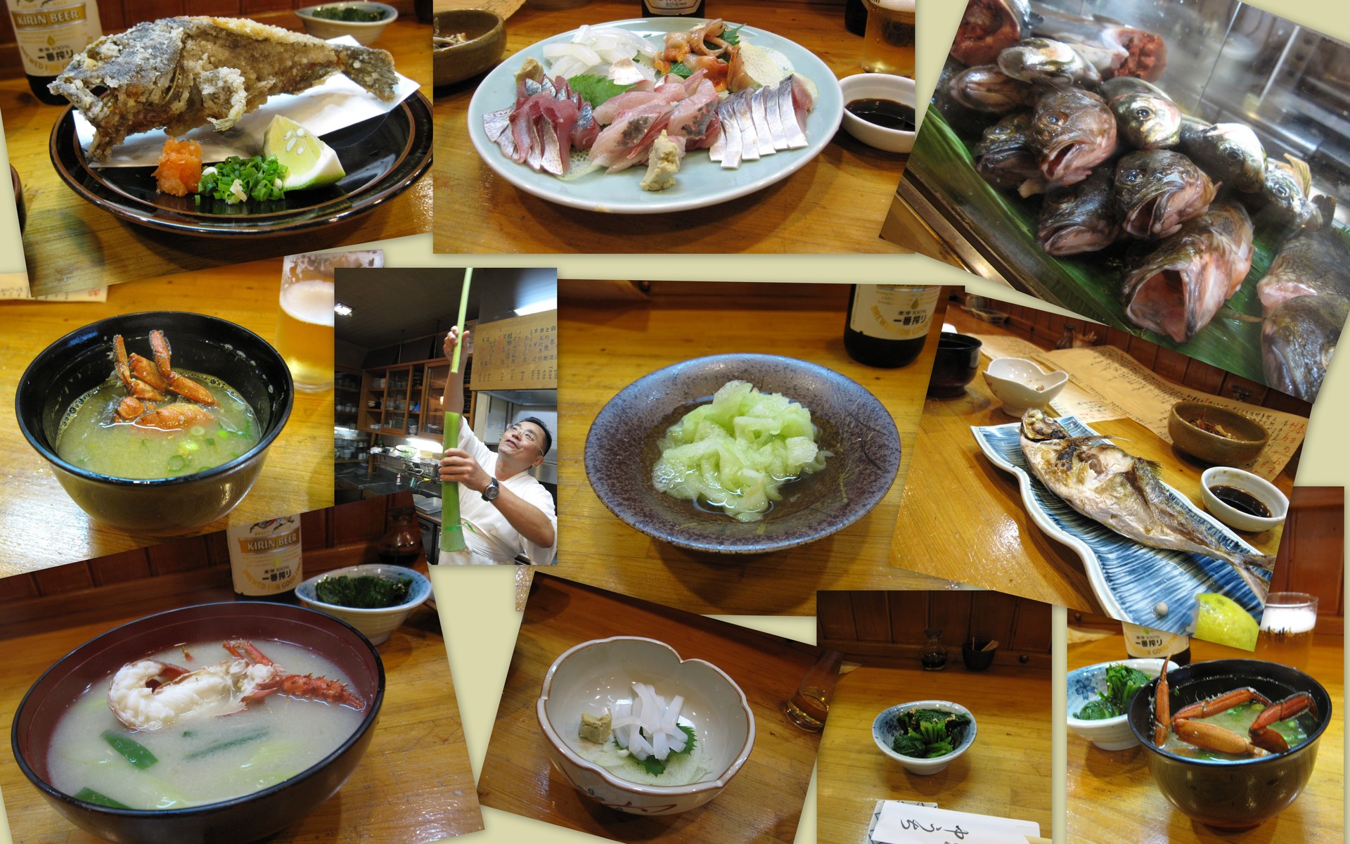 鯛の塩焼きやワラサのお刺身、新米とおばさんがご自分で作られたお味噌で作ったお味噌汁、どれも美味しく、その日の朝できたつけあげ(さつまあげ) は、フワフワ。