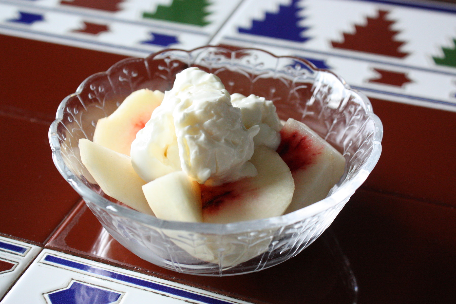 余談ですけれど、この桃は芯のところの色がとっても濃いので、コンポートにしたら綺麗〜な色のシロップができたでしょうね?