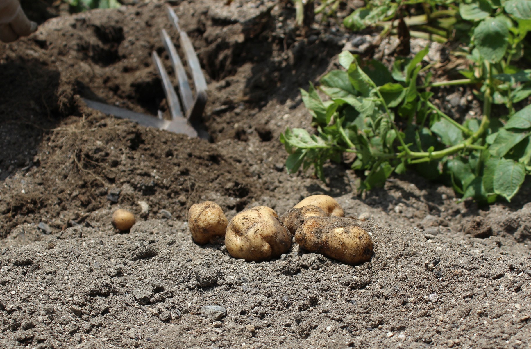 ナスタチュームやフェンネルと一緒に添えられたじゃがいもは ↑ の掘りたてのじゃがいもですよ〜。