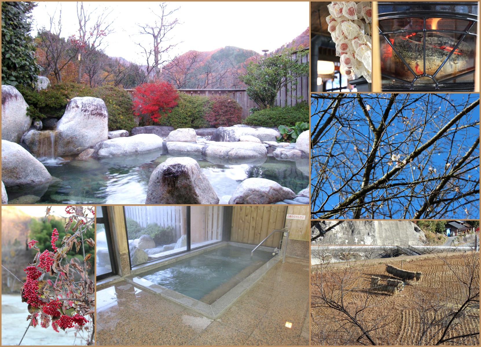その後、群馬県の沢渡温泉の "まるほん旅館" にも宿泊しました。渡り廊下の先にある檜造りの温泉小屋の中に橋がありその下に木の湯船。洗い場も全部が檜で造られた少し変わった造りの温泉が印象的でした。