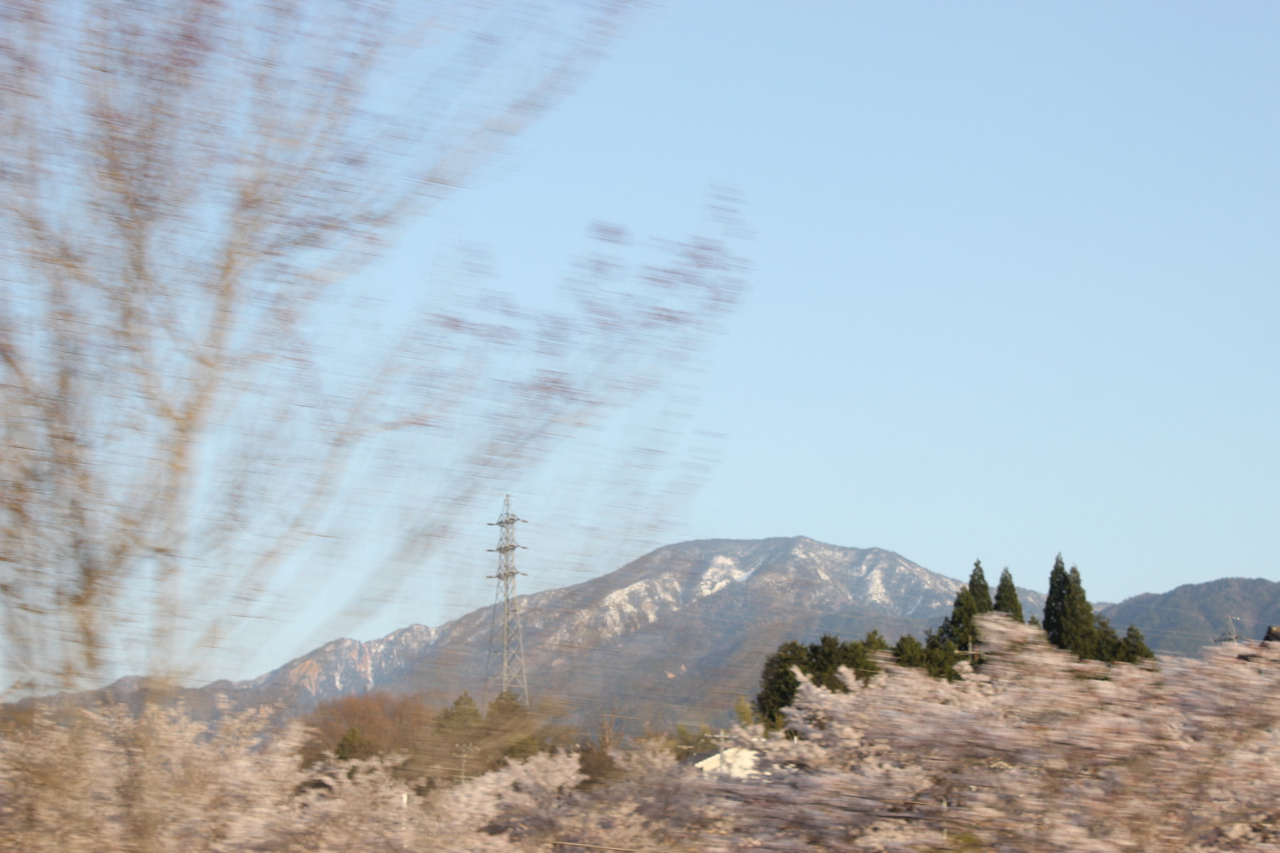 途中、赤坂峠(標高951m)、治部坂峠(標高1163m)、寒原峠(標高1073m)などの高地を走るので桜や梅が咲いていて、まだ春の装い。
