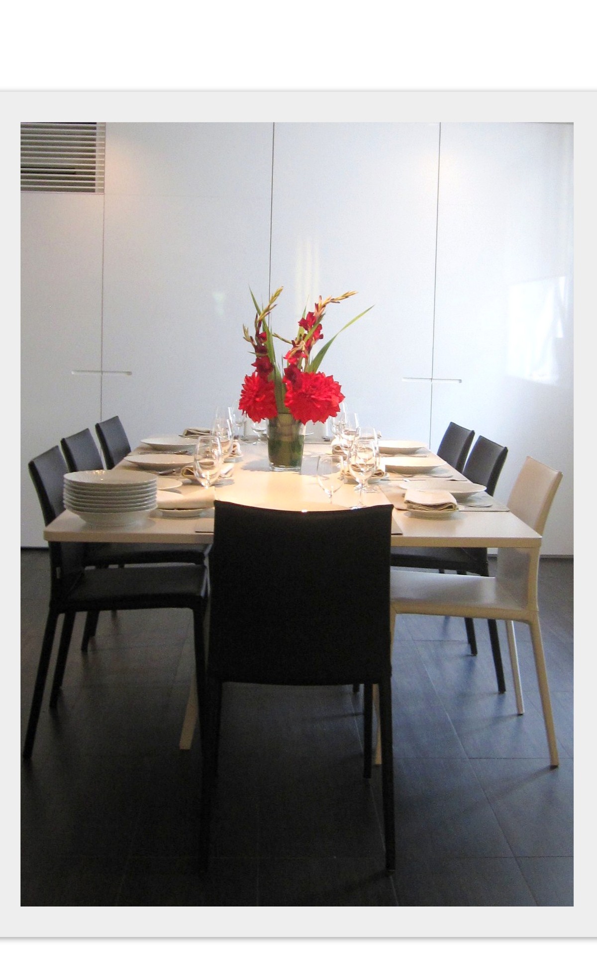 今月のテーブルには、真っ赤な大輪のダリアと深紅のグラジオラス。
