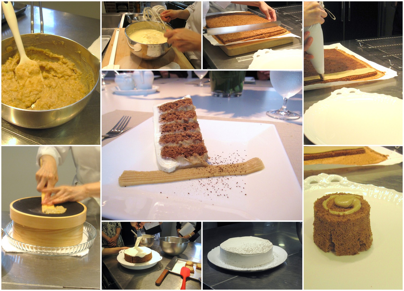 マロン・クリームたっぷりの秋色デザートは、カットしたらマロン色とココア色の断面に周囲の白が映えて、更に美味しそうになりました。