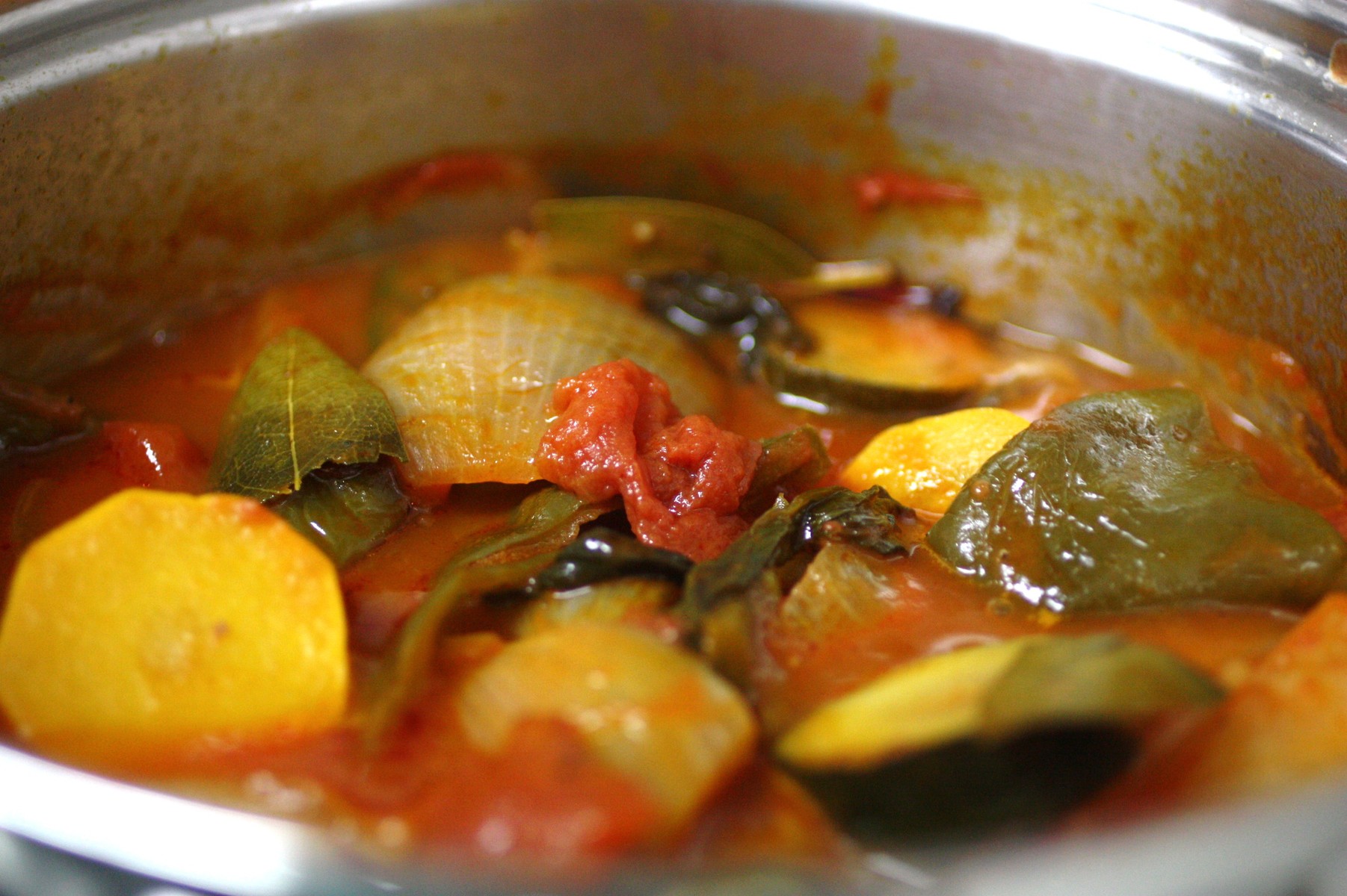 カラー・パプリカがなかったので普通のグリーンのピーマンにしたのと、トマトを同じ日に作ったカプレーゼに使ってしまって、フレッシュ・トマトは 1個だけ。後は水煮缶にしたので色合いが地味目です (^^)