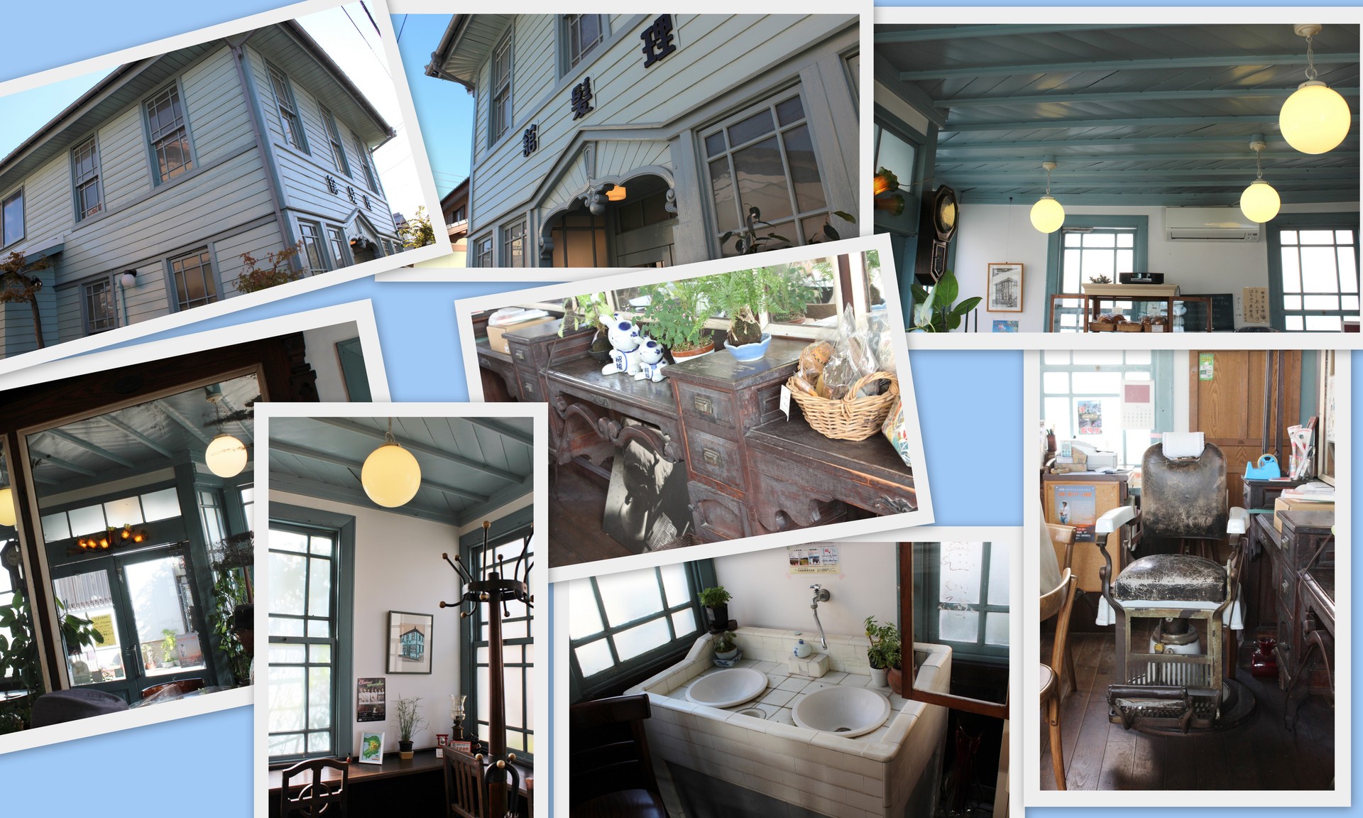 知らないで入った建物でしたが、ここは、大正 12年に建てられた洋館造りの理髪店を再生した喫茶店 "青い理髪館 工房 モモ" でした。