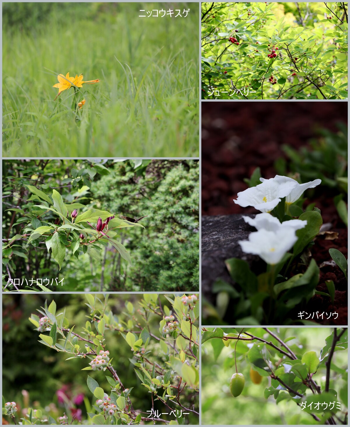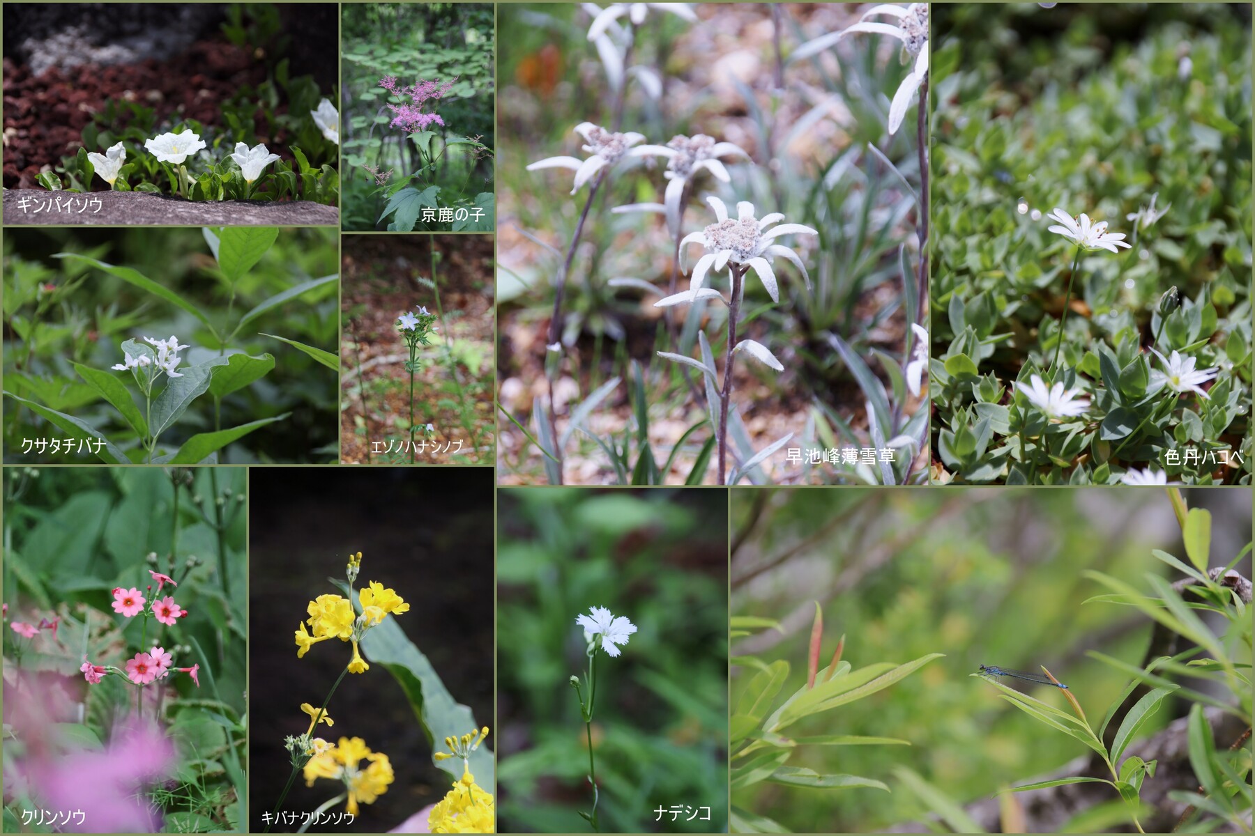 左下の白いお花は名前が分かりません。"夏椿" かな〜?