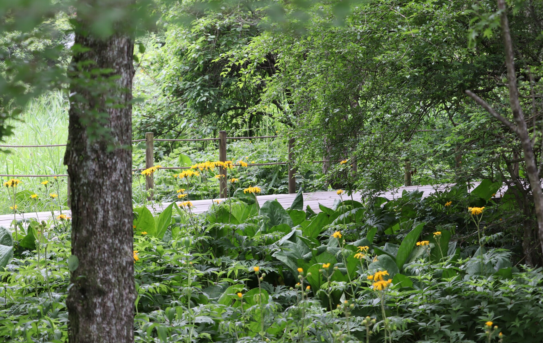 入れなくなっていた湿地の木道が整備されていて、奥の方まで行くことができましたが、ところどころにアヤメが咲いているくらい。