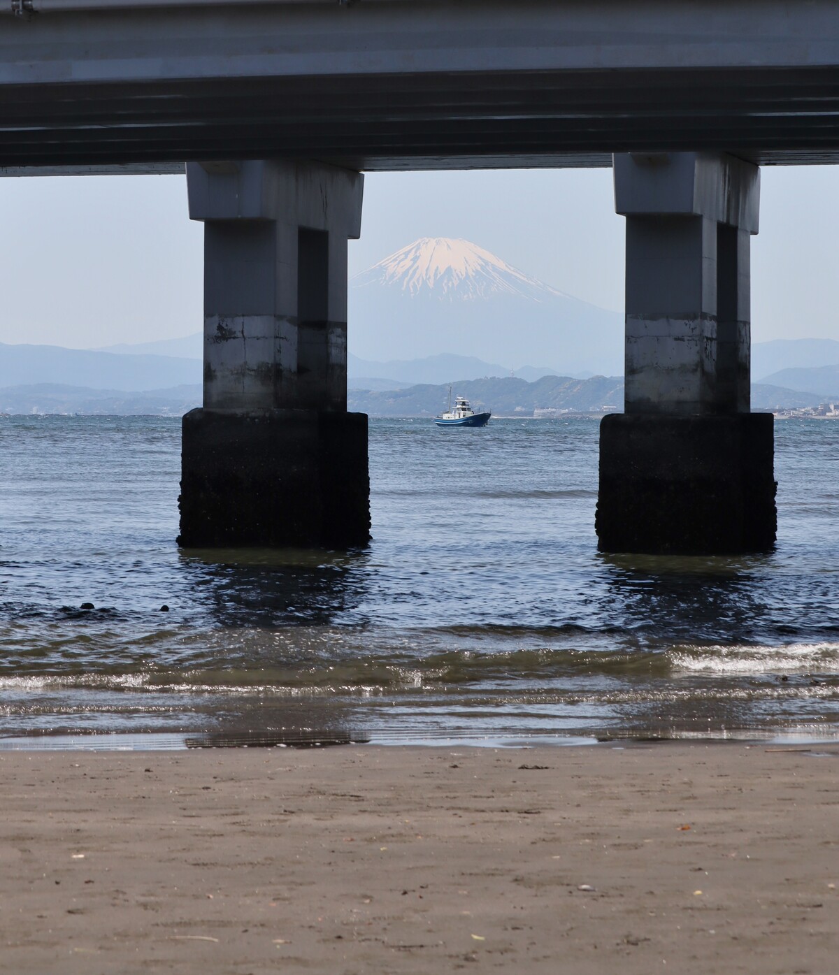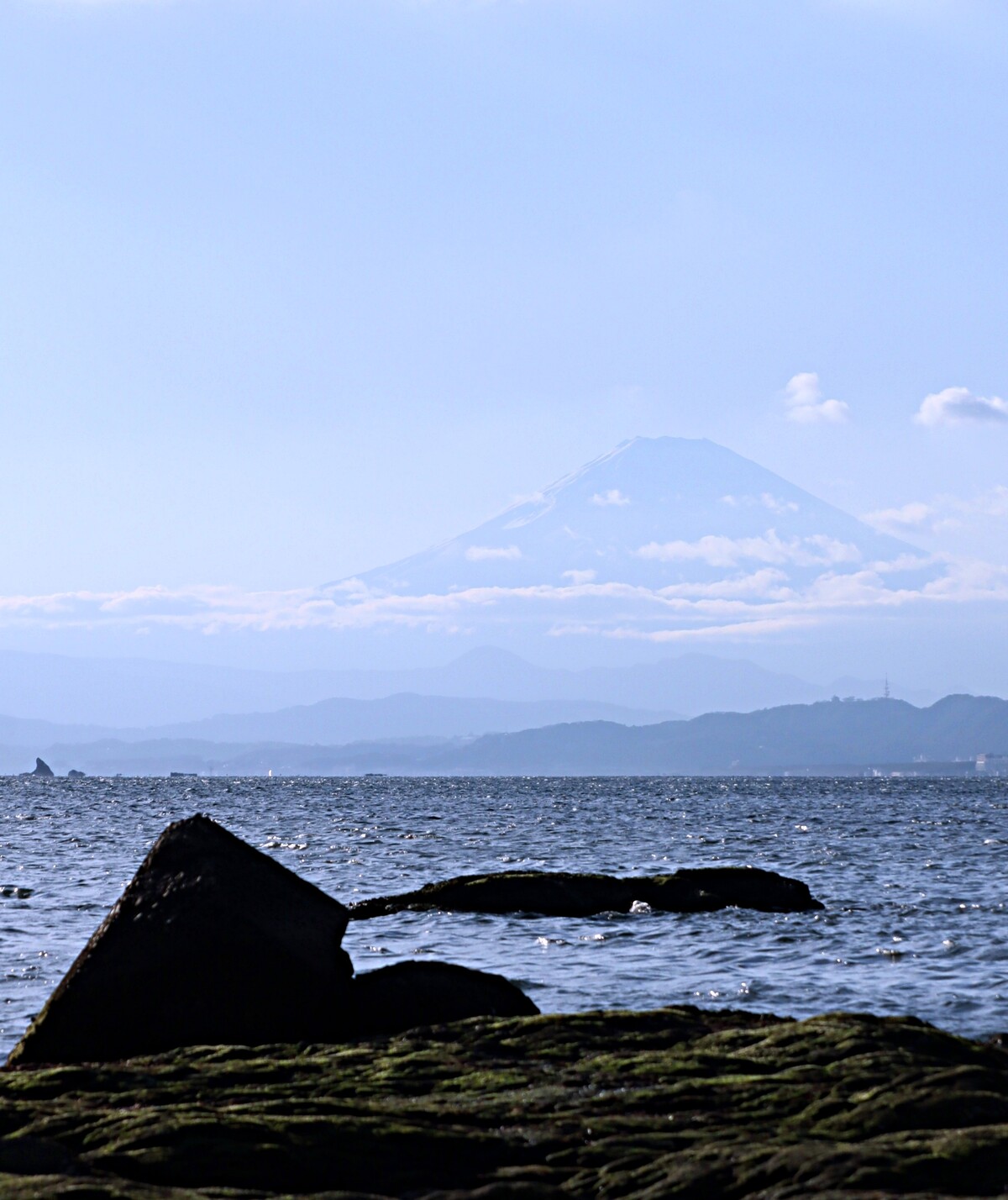 青い海がキラキラ光って眩しい! でも、残念ながら富士山は全く見えず。