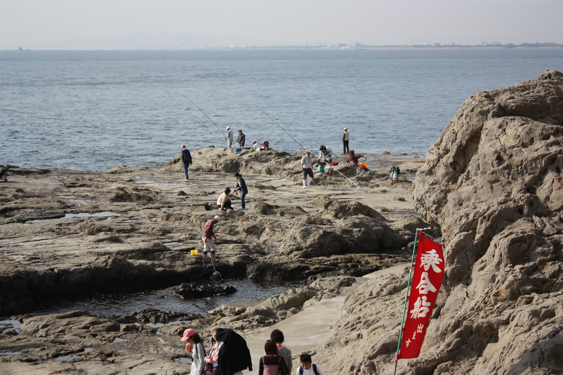 そして先端まで行ったら、すっかり潮が引いていて、魚釣りを楽しんでいらっしゃる方が大勢。