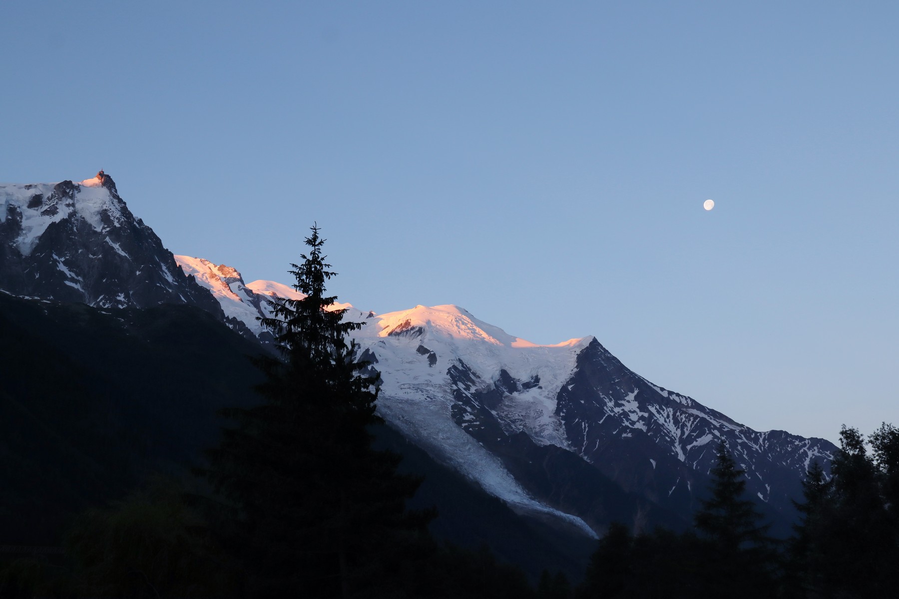 ↑ 朝日に輝く モン・ブラン。