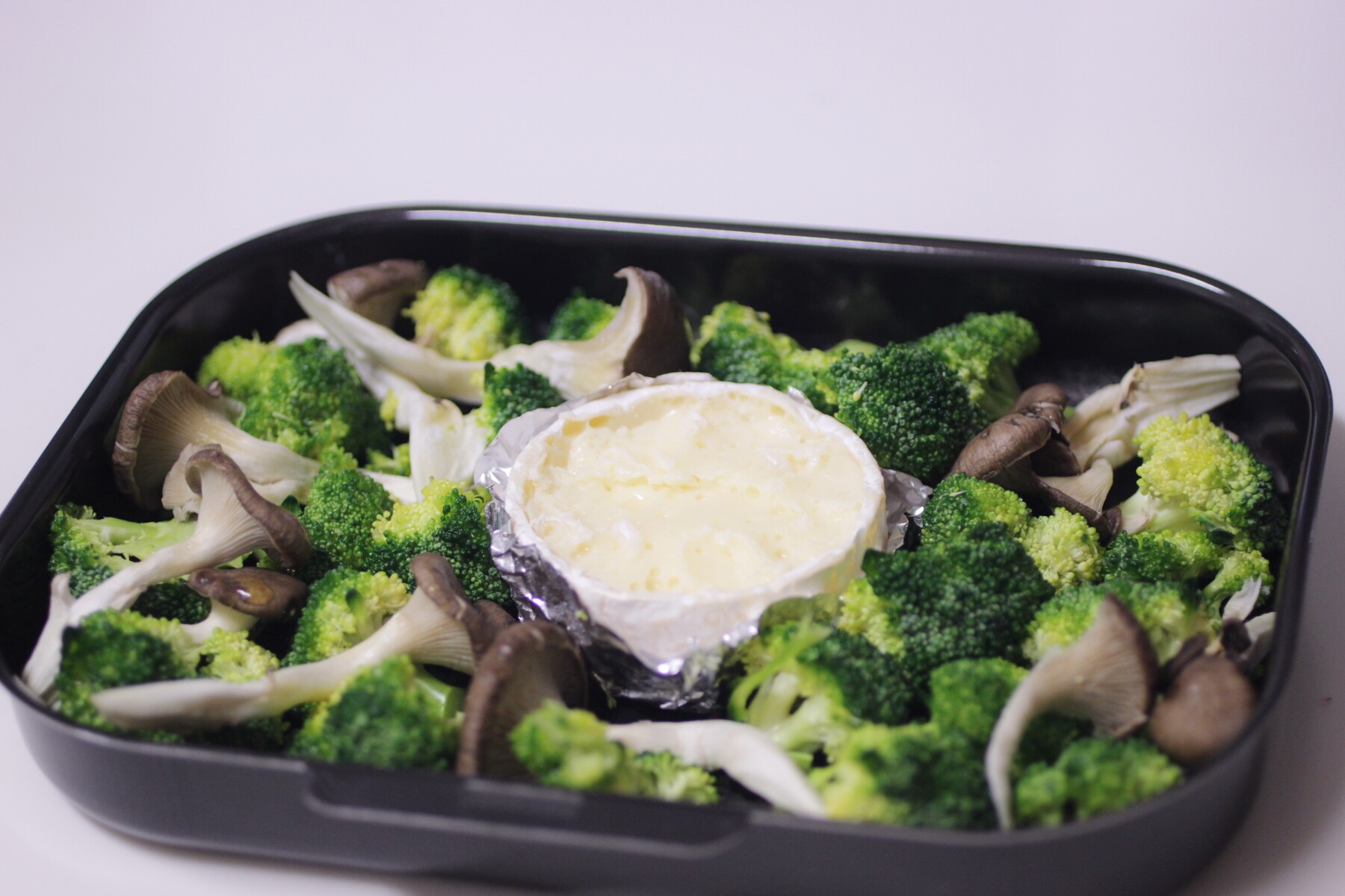 上からオリーヴ・オイルを適当に回しかけ、真ん中に上の皮を外したカマンベールを置いて、焼くだけ・・・超簡単なので、リピあり〜〜!