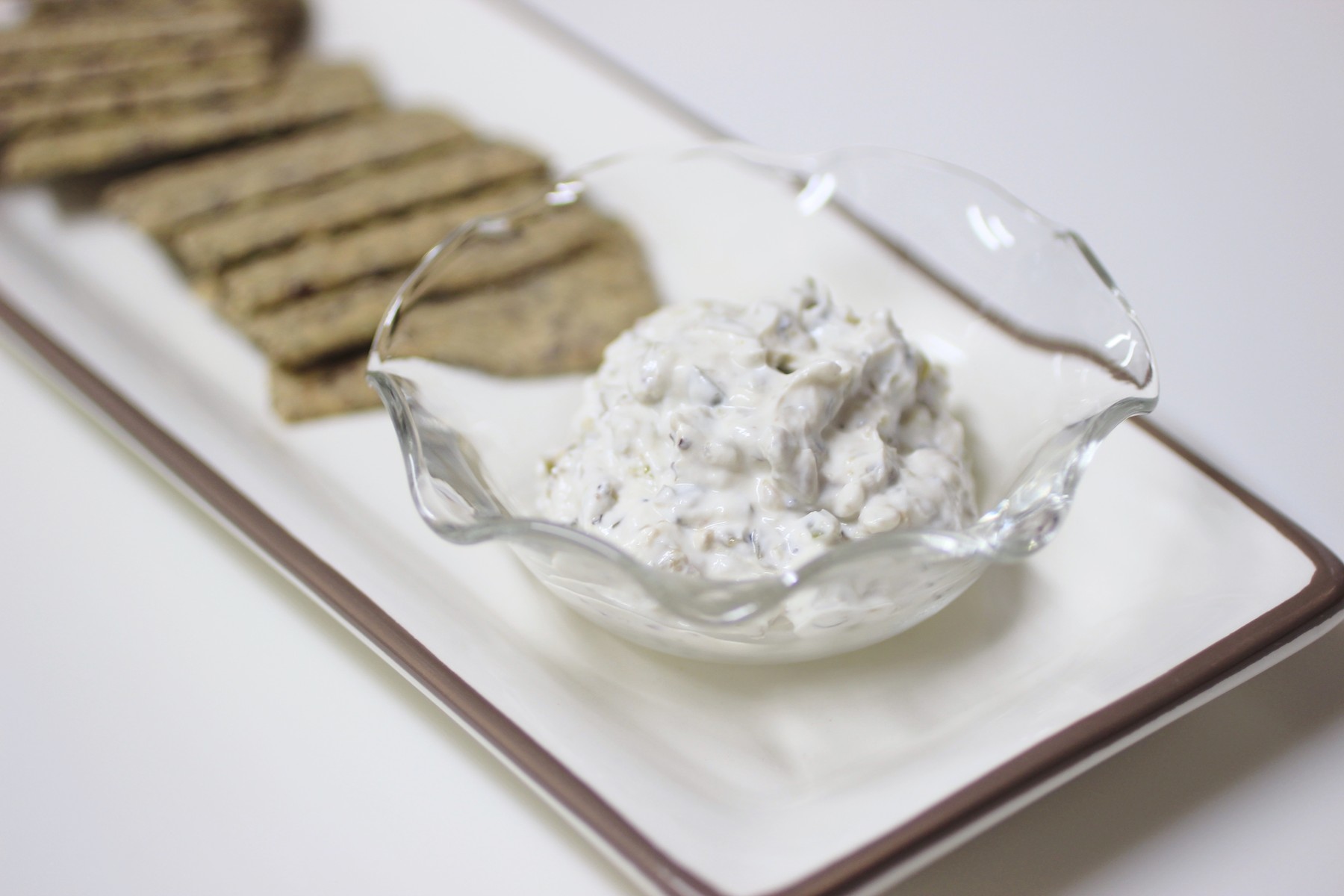 水切りヨーグルトで作ったディップをクラッカーに載せてカナッペに。