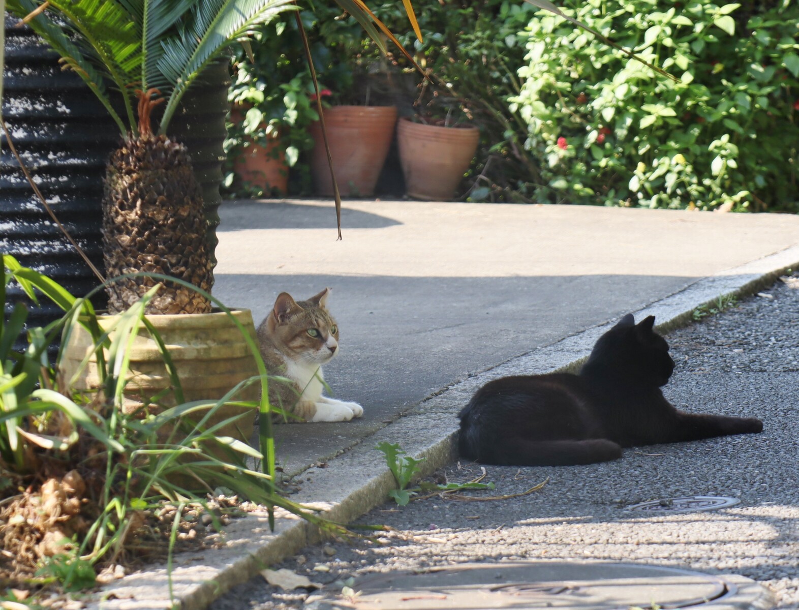 暑い夏の午後もニャーちゃんたちは、涼しい場所を選んでまったり。